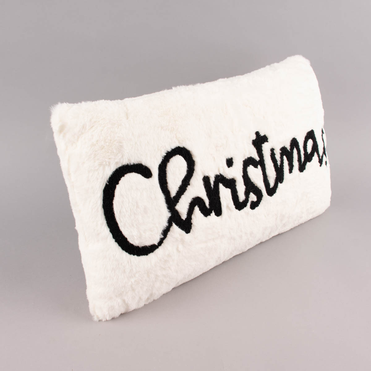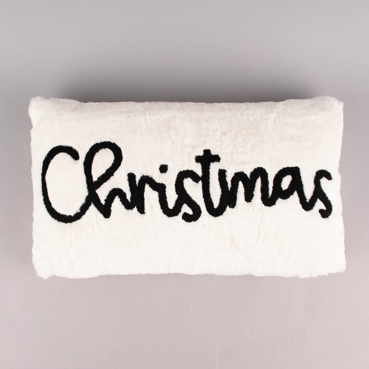 Deko Weihnachtskissen Christmas aus Plüsch weiß schwarz 30x50cm