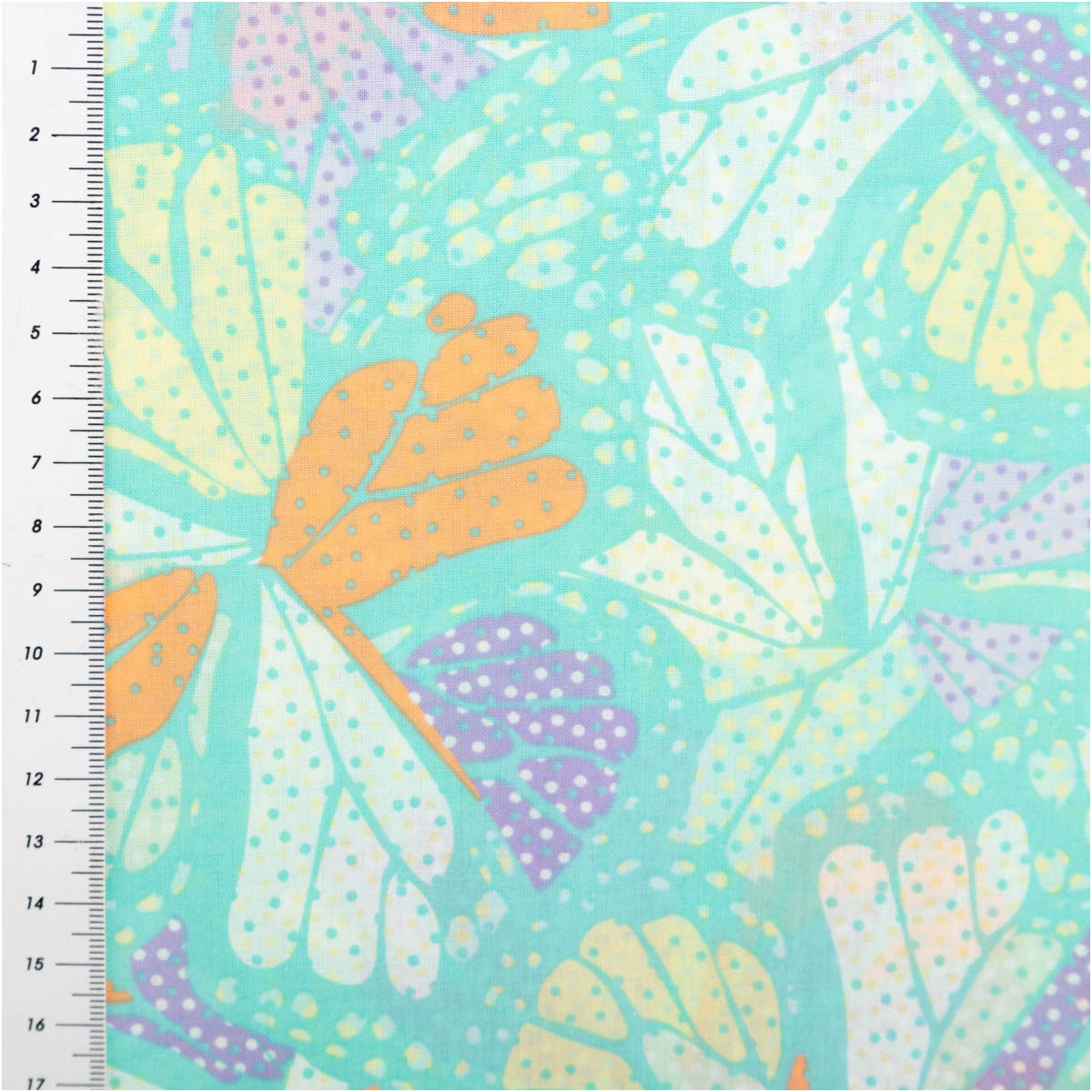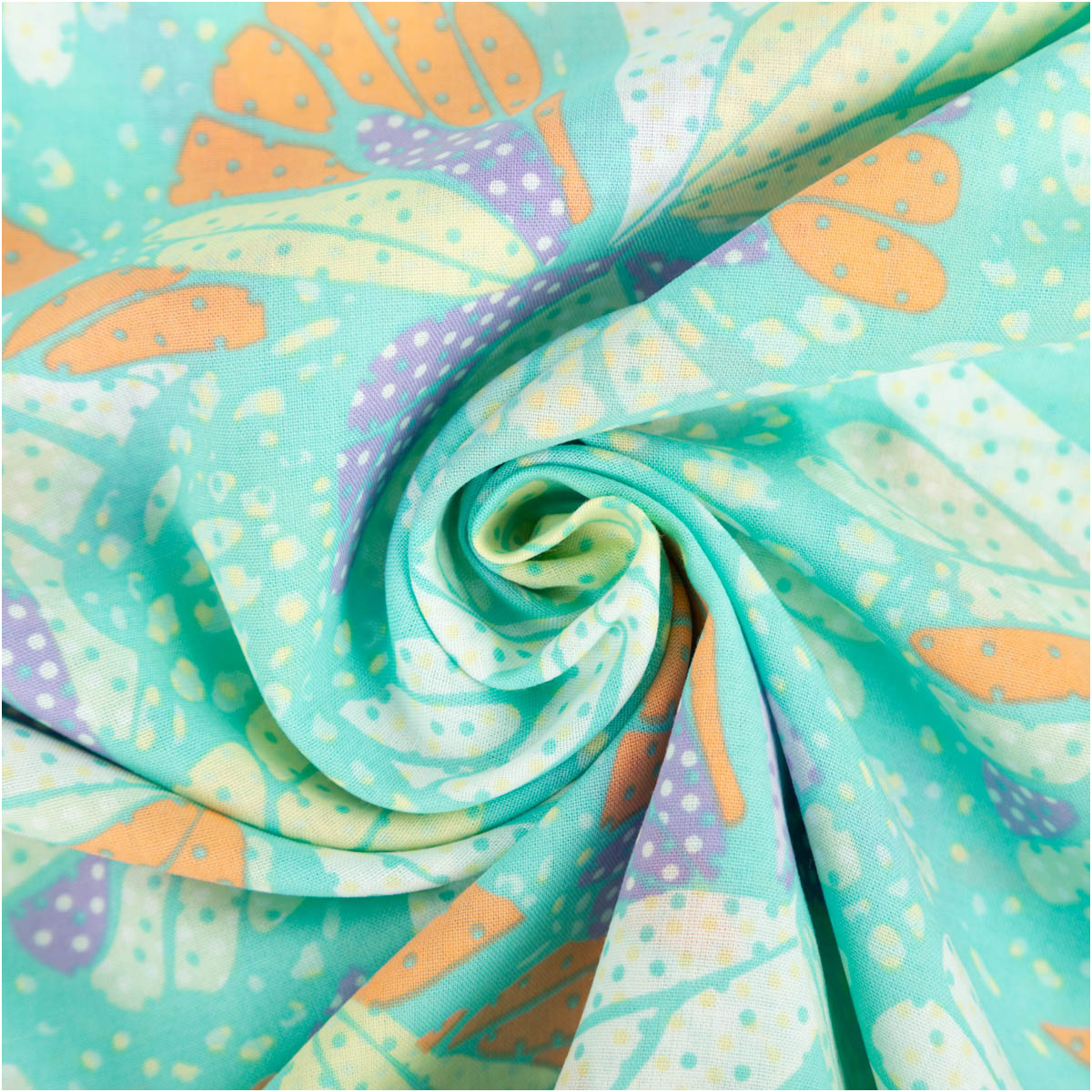 Baumwollstoff Voile Sommerprint türkis gelb llila orange 1,40m Breite