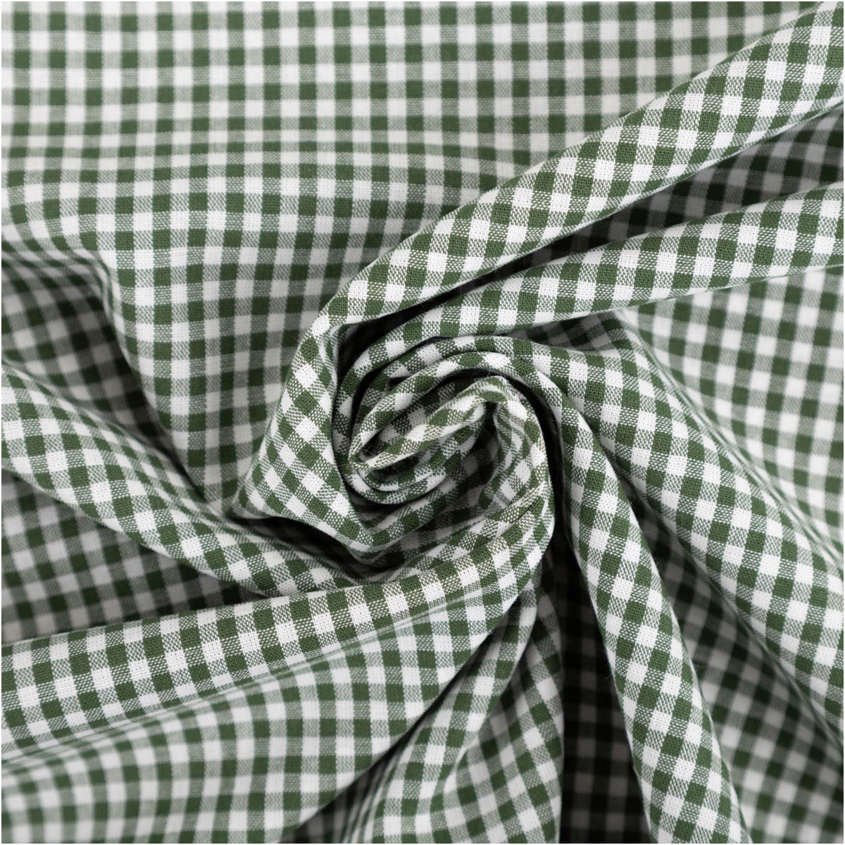 Das kleine Karomuster in dunkelgrün und weiß verleiht dem Stoff eine klassische, zeitlose Ausstrahlung. Es wirkt ordentlich, dezent und stilvoll – ideal für moderne und traditionelle Designs gleichermaßen.