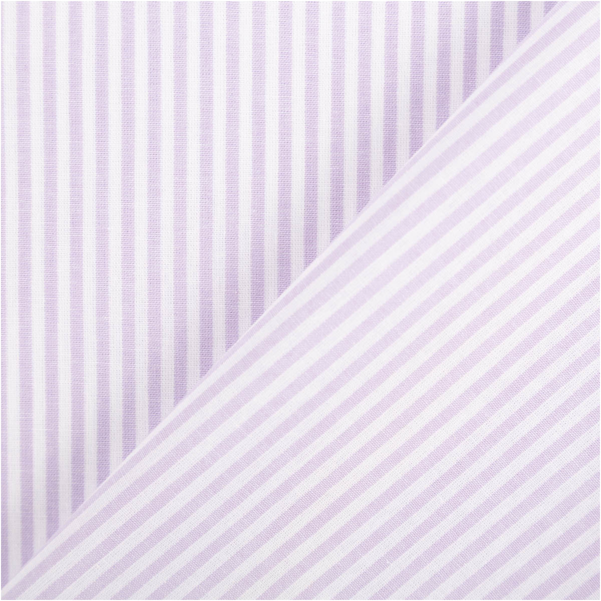 Dieser hochwertige Yarn Dyed Popeline mit feinen 3-mm-Streifen in Lila und Weiß überzeugt durch seine klare Optik, natürliche Haptik und vielseitige Einsetzbarkeit. Der Stoff wird aus garngefärbtem Kammgarn gewebt und zeigt dadurch eine gleichmäßige Farbwirkung auf Vorder- und Rückseite. Das Ergebnis ist ein besonders hochwertiger, langlebiger Baumwollstoff mit weichem, luftigem Griff.