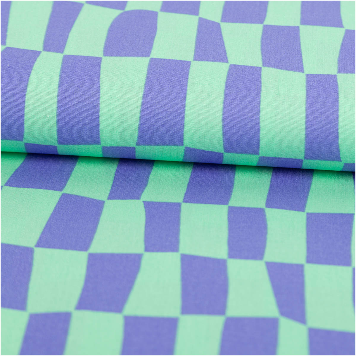 Bio Baumwollstoff Popeline Rechtecke Jennifer Bouron blau türkis 1,48m Breite