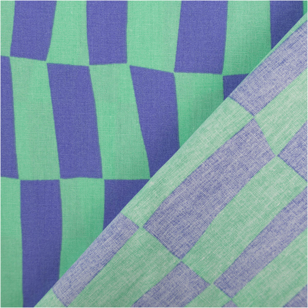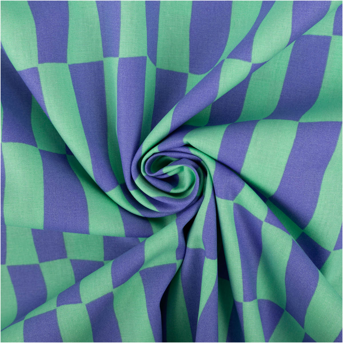 Bio Baumwollstoff Popeline Rechtecke in Blau und Türkis