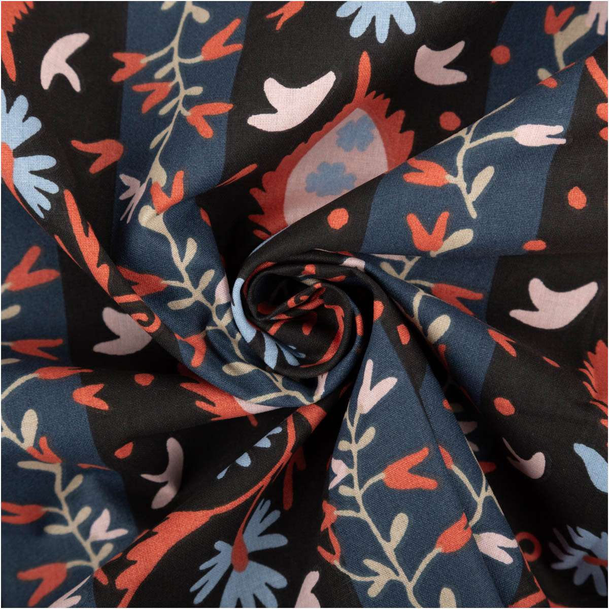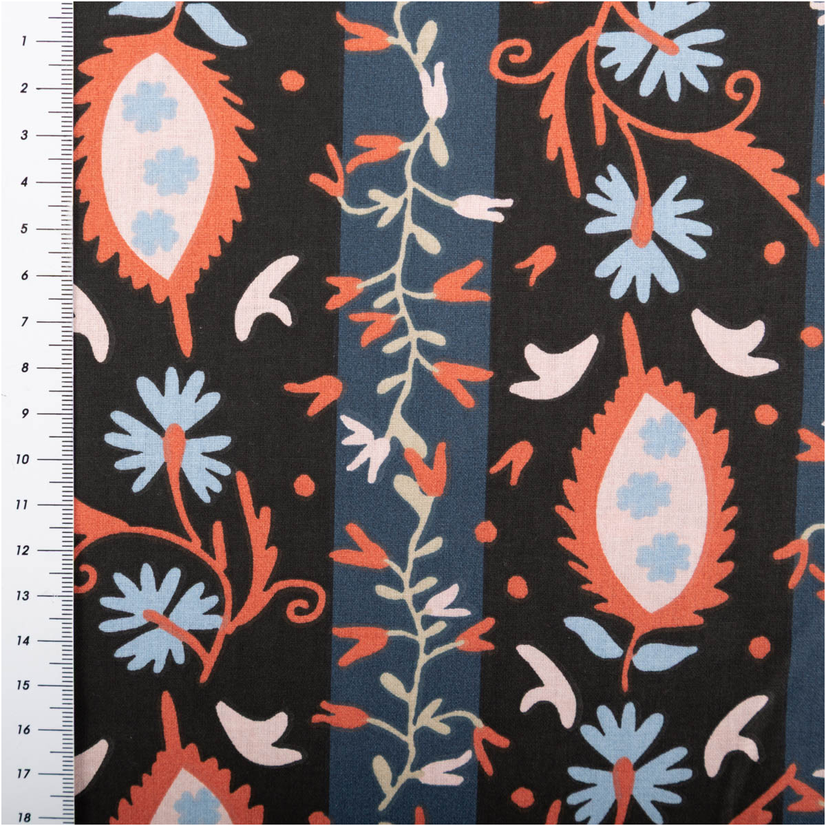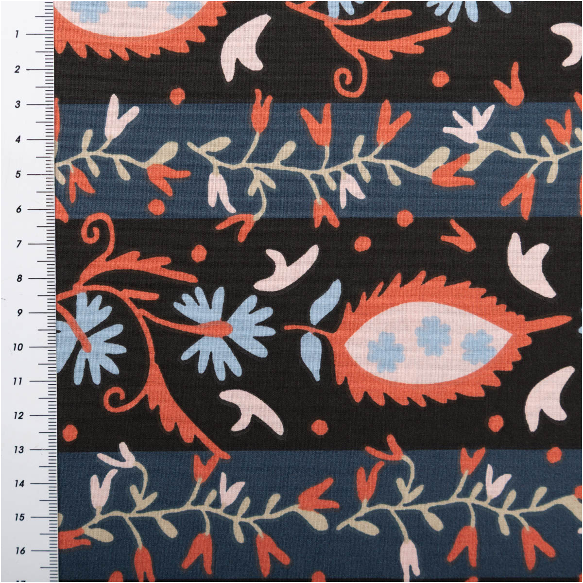 Baumwollstoff Alezia Streifen Blumen schwarz 1,47m Breite