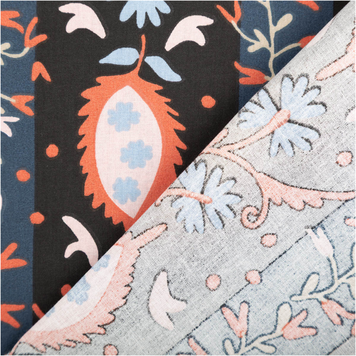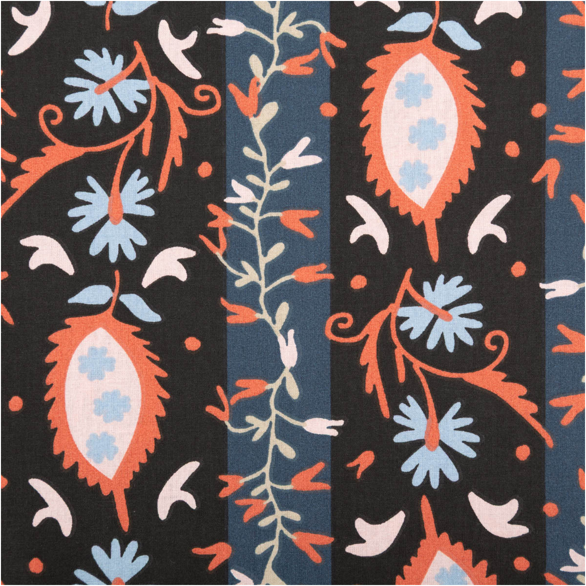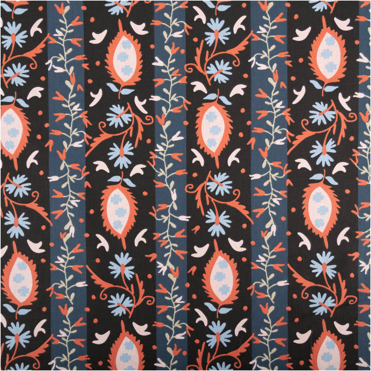 Baumwollstoff Alezia Streifen Blumen schwarz 1,47m Breite