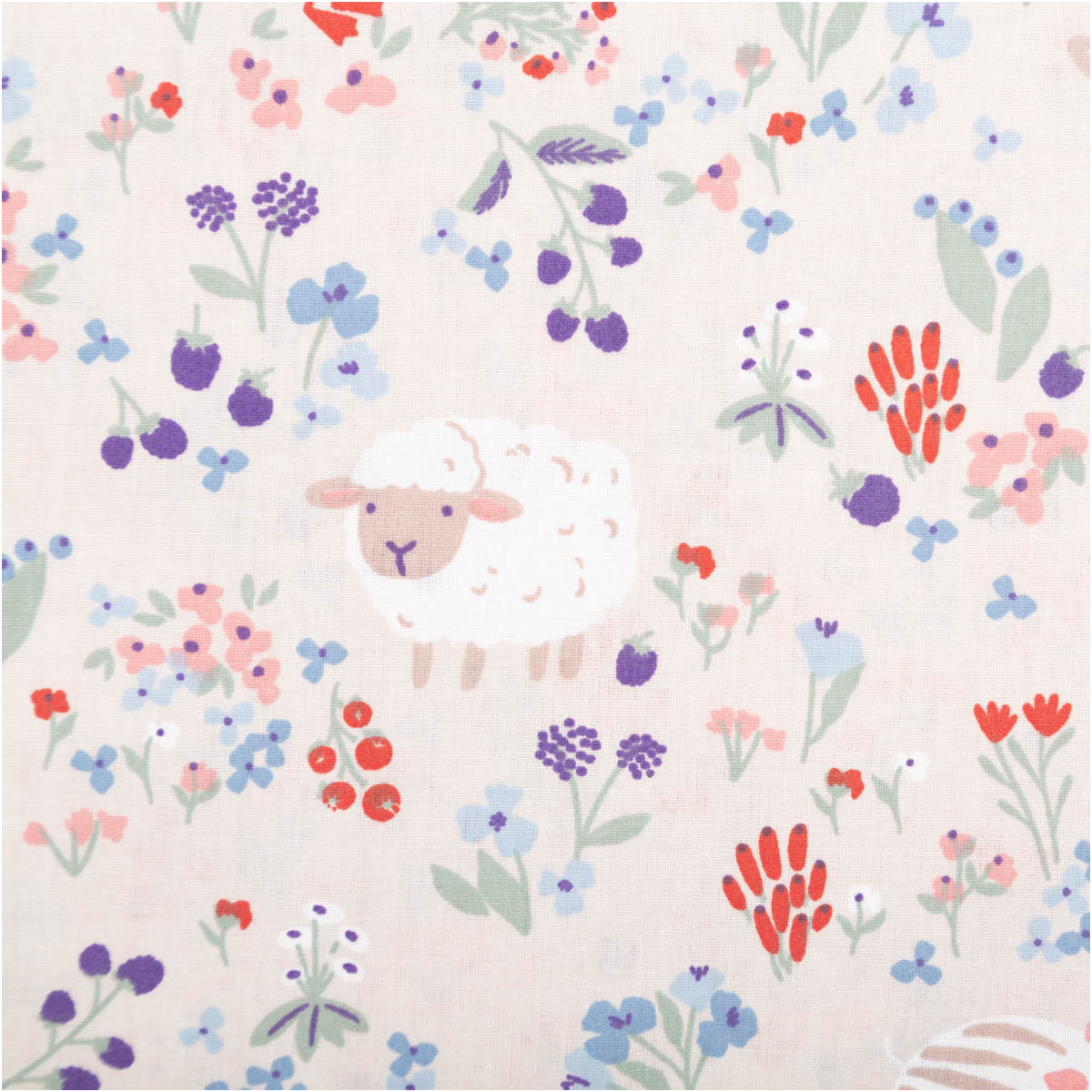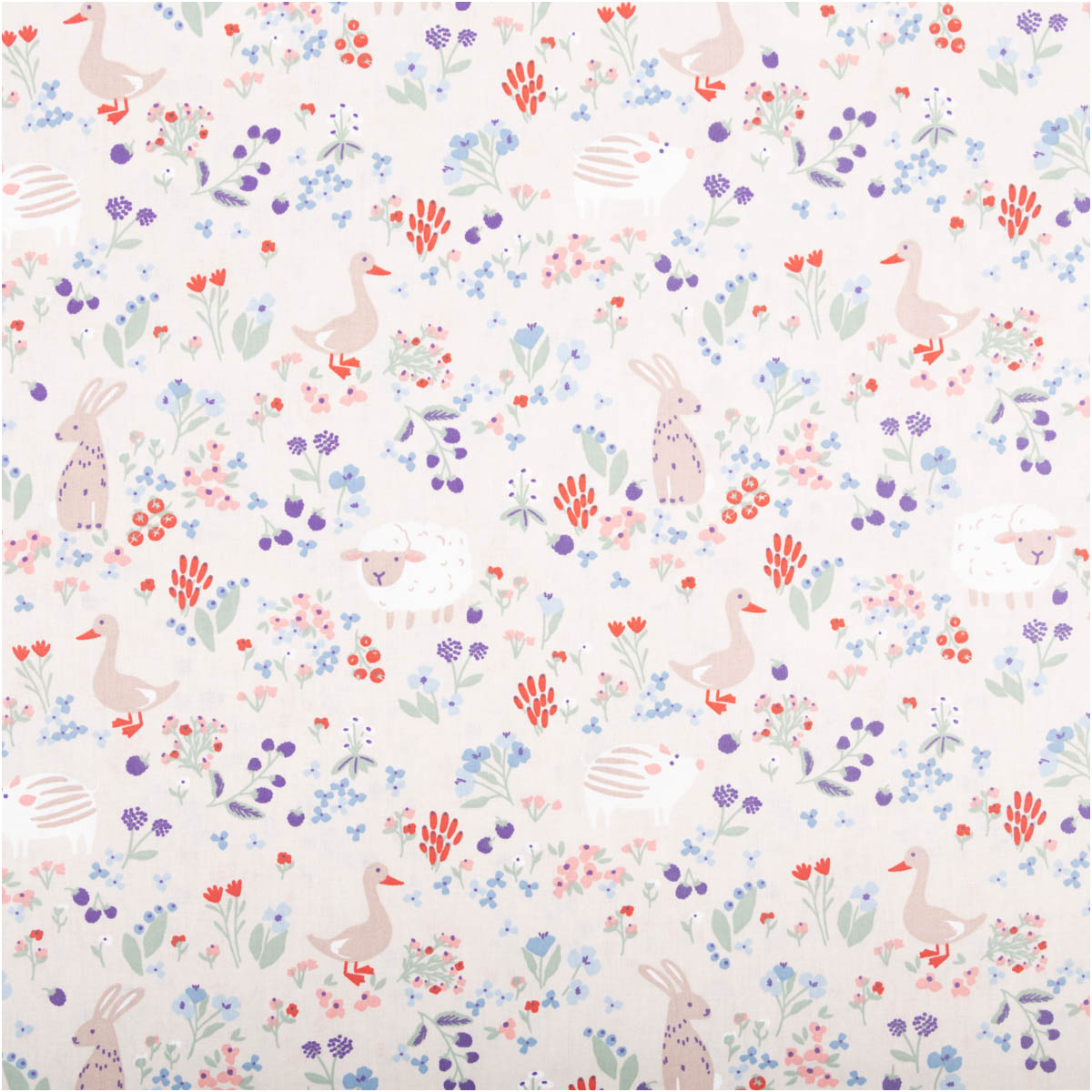 Verspieltes Tier- und Blumenmotiv mit Schaf, Hase, Ente & Igel
