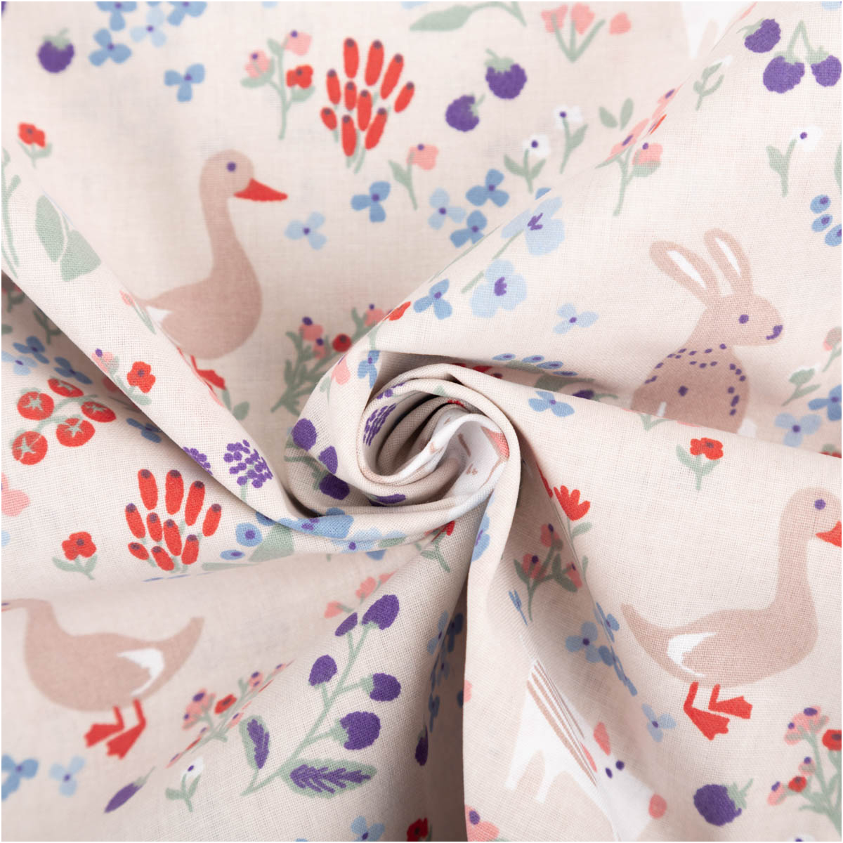 Der Baumwollstoff Berries Tiere Blumen grau bringt mit seinem liebevollen Design gute Laune in jedes Nähprojekt. Auf grauem Grund tummeln sich fröhliche Tiere wie Schafe, Hasen, Enten und Igel zwischen bunten Blumen und Beeren. Das macht diesen Stoff besonders charmant für Kinder- und Babyprojekte, aber auch für kreative Accessoires und frische Dekoideen.