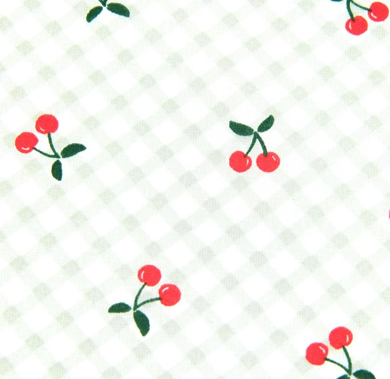 Leichte Baumwoll-Webware mit fröhlichem Kirschen-Dessin und Rautenmuster