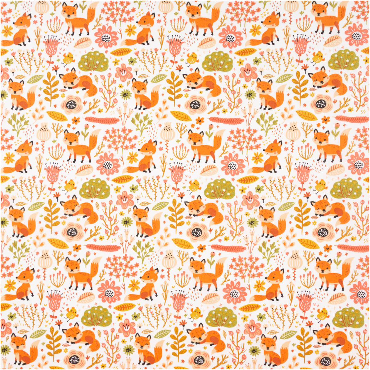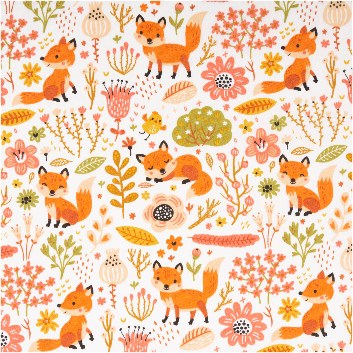 Wenn du einen Baumwollstoff mit Fuchs-Motiv suchst, der niedlich, modern und vielseitig einsetzbar ist, triffst du mit Foxy in Weiß und Orange eine richtig schöne Wahl.