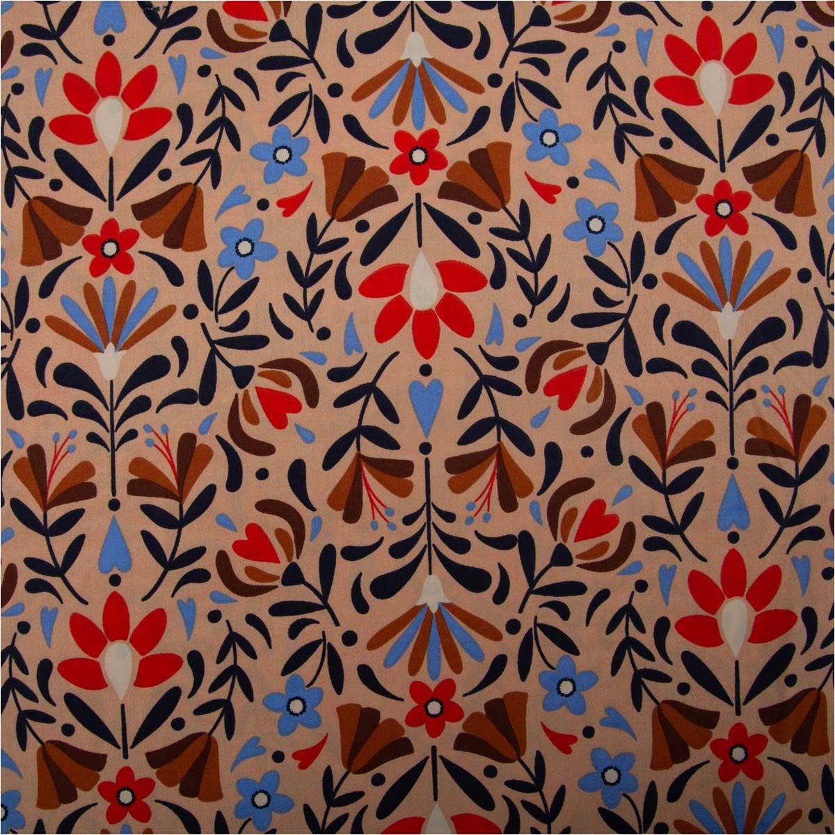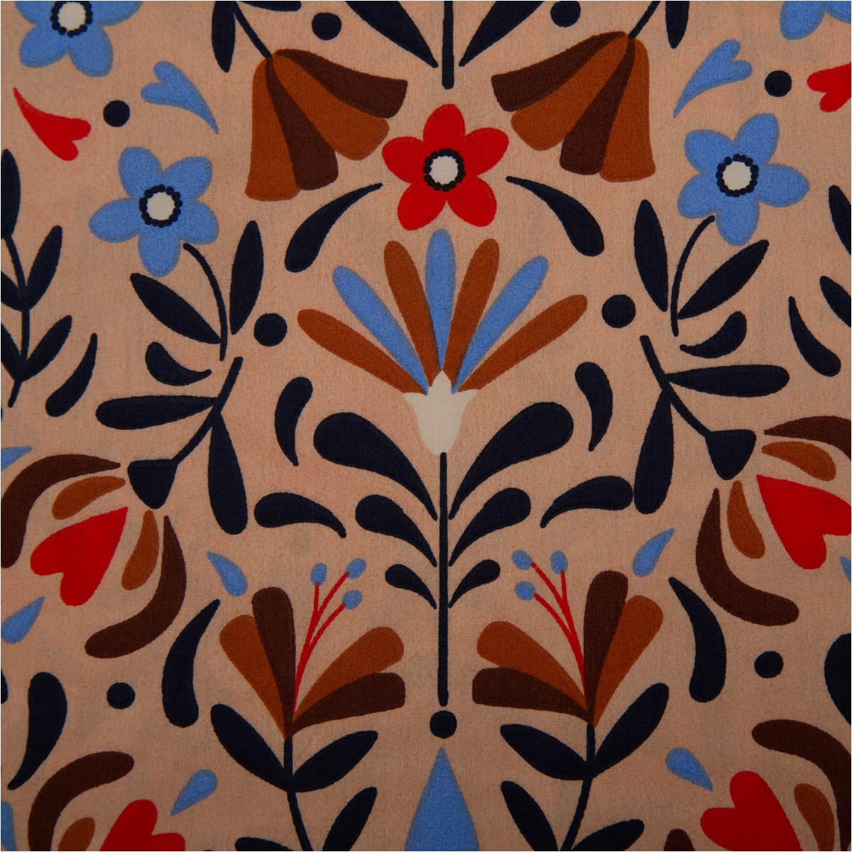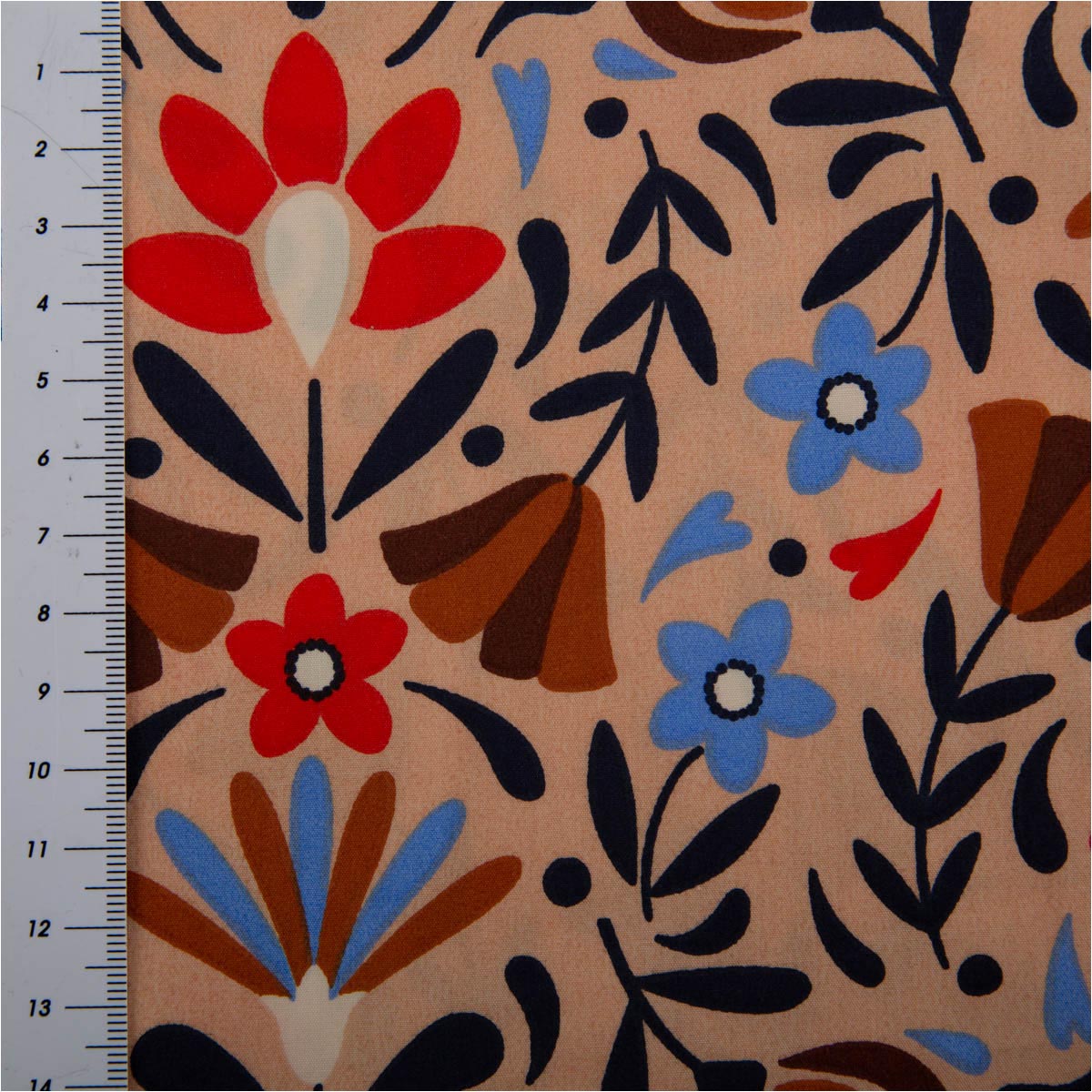 Exklusiver Baumwollstoff aus Frankreich mit Scandi-Blumenmuster auf beigem Grund