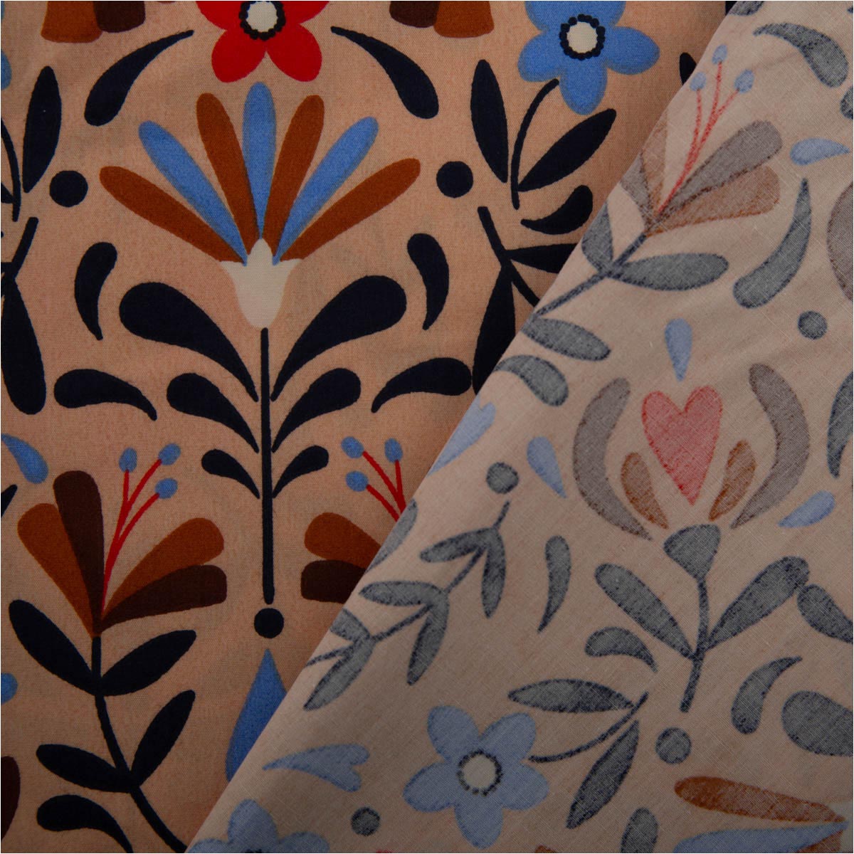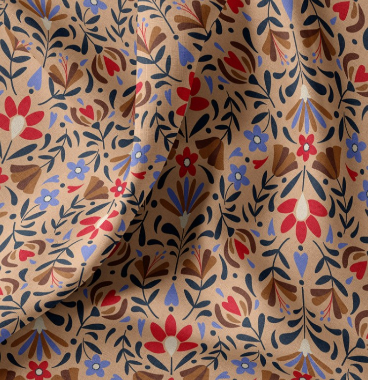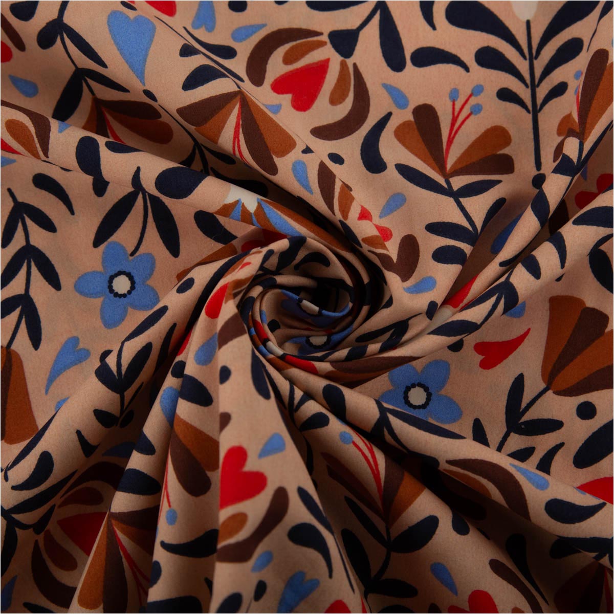 Exklusiver Baumwollstoff aus Frankreich mit Scandi-Blumenmuster auf beigem Grund