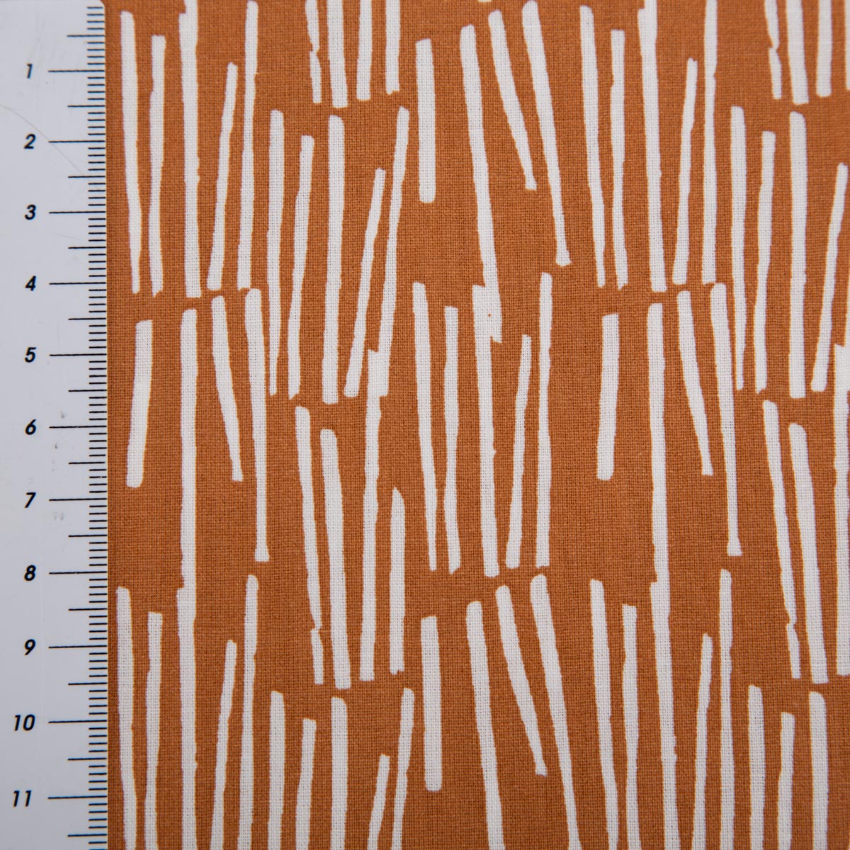 Baumwollstoff Lekker – abstrakte Strichoptik in Karamell und Weiß