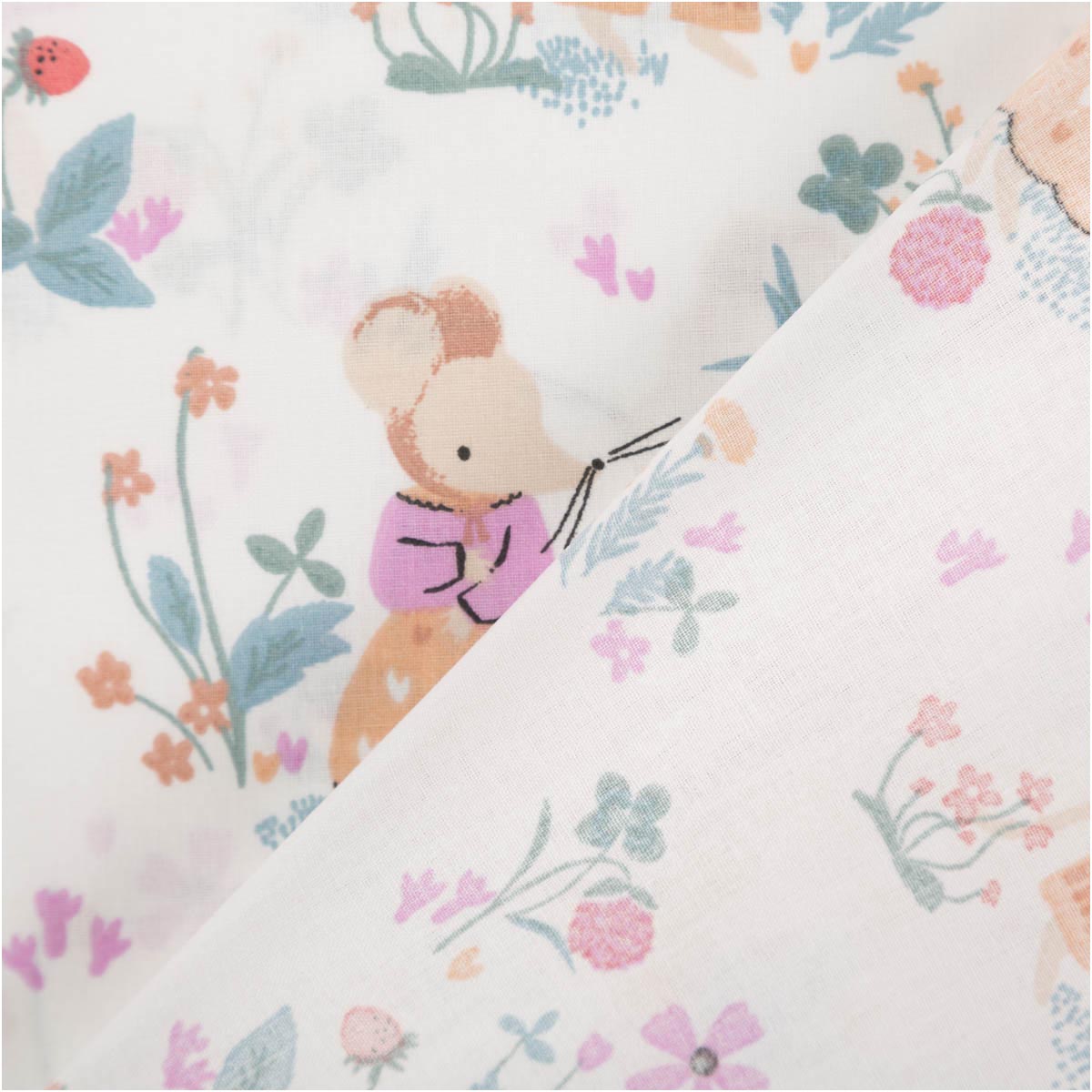 Baumwollstoff Mahaut Mäuse Blumen ecru bunt 1,47m Breite