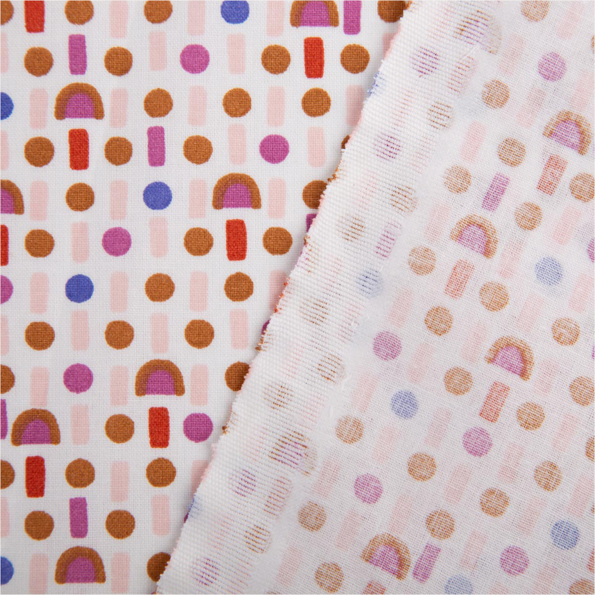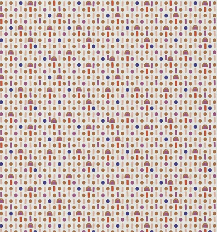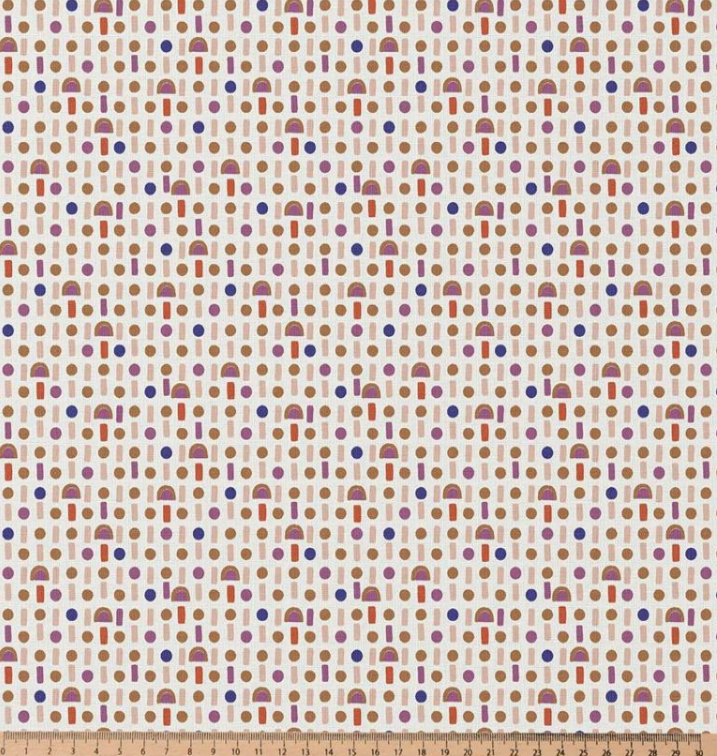 Baumwollstoff Miho Mini Formen – weiß, violett, kupfer – 1,47 m Breite