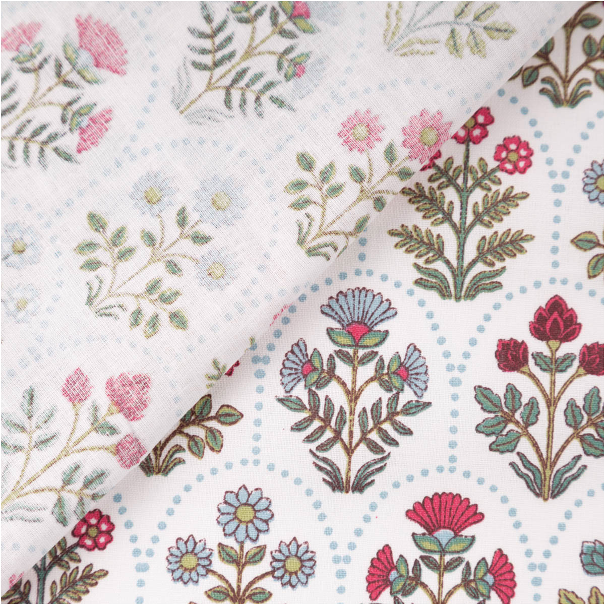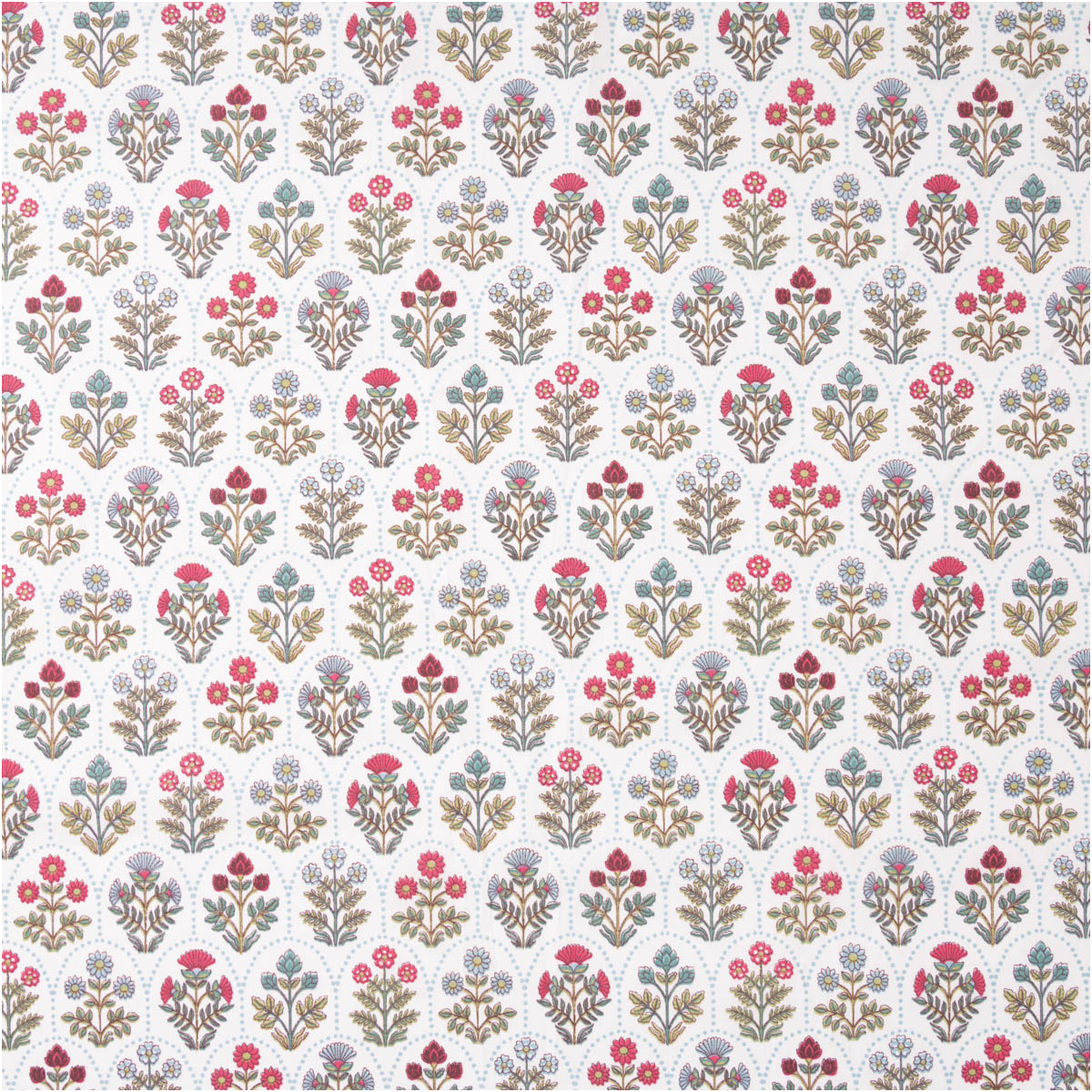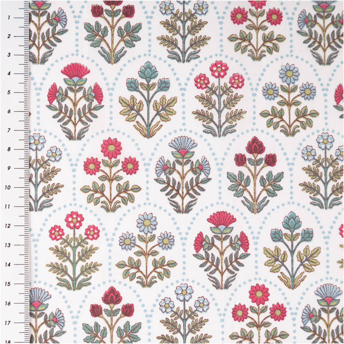 Dieser hochwertige Baumwollstoff Saphir begeistert mit einem detailreichen Blumen-Wellenmuster in Grün, Rot und Blau auf weißem Grund. Das exklusive französische Dessin verleiht dem Stoff eine freundliche, harmonische Ausstrahlung und macht ihn zu einer idealen Wahl für kreative Nähprojekte rund um Kinder, Babys, Wohnen und leichte Kleidung.