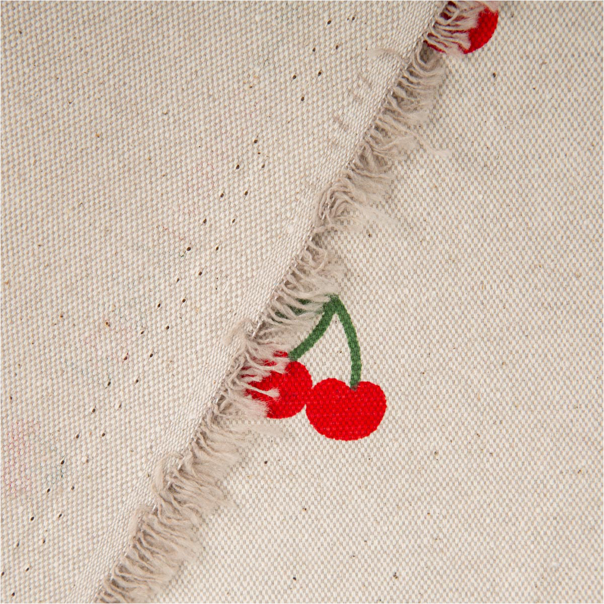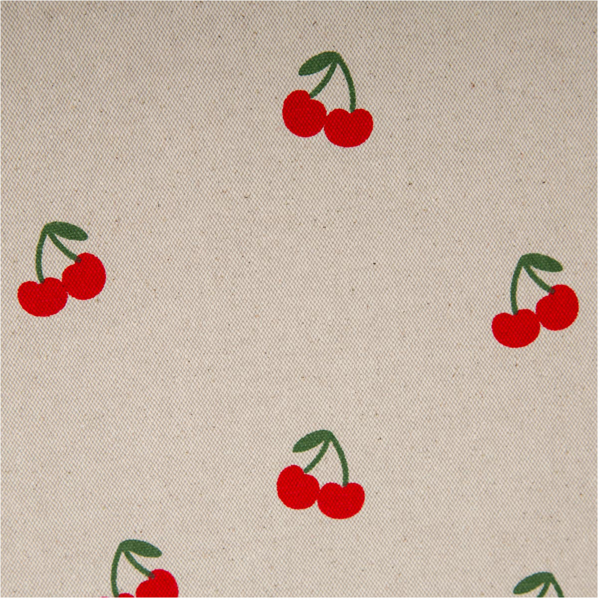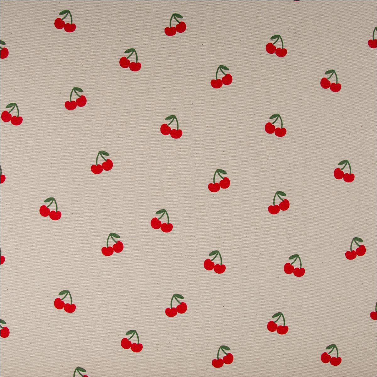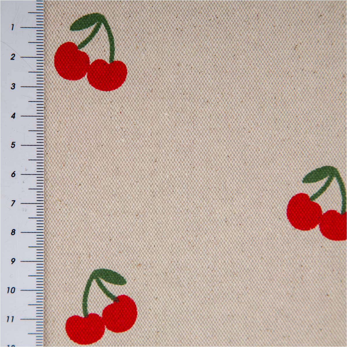 Canvas Stoff im natürlichen Leinenlook mit frischem Kirsch-Allover in rot auf naturfarbenem Hintergrund.