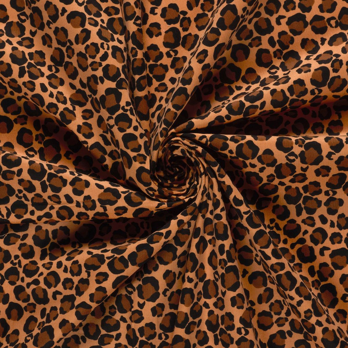Dieser Feincord aus 100 % Baumwolle überzeugt mit feiner 21W-Rippenstruktur, samtigem Griff und modernem Leo-Muster in warmen Braun- und Schwarztönen. Der Stoff ist atmungsaktiv, strapazierfähig und angenehm zu tragen – ideal für Mode, Accessoires und Deko.