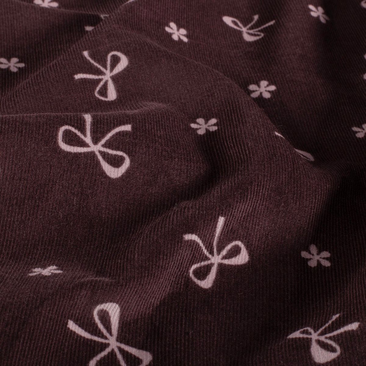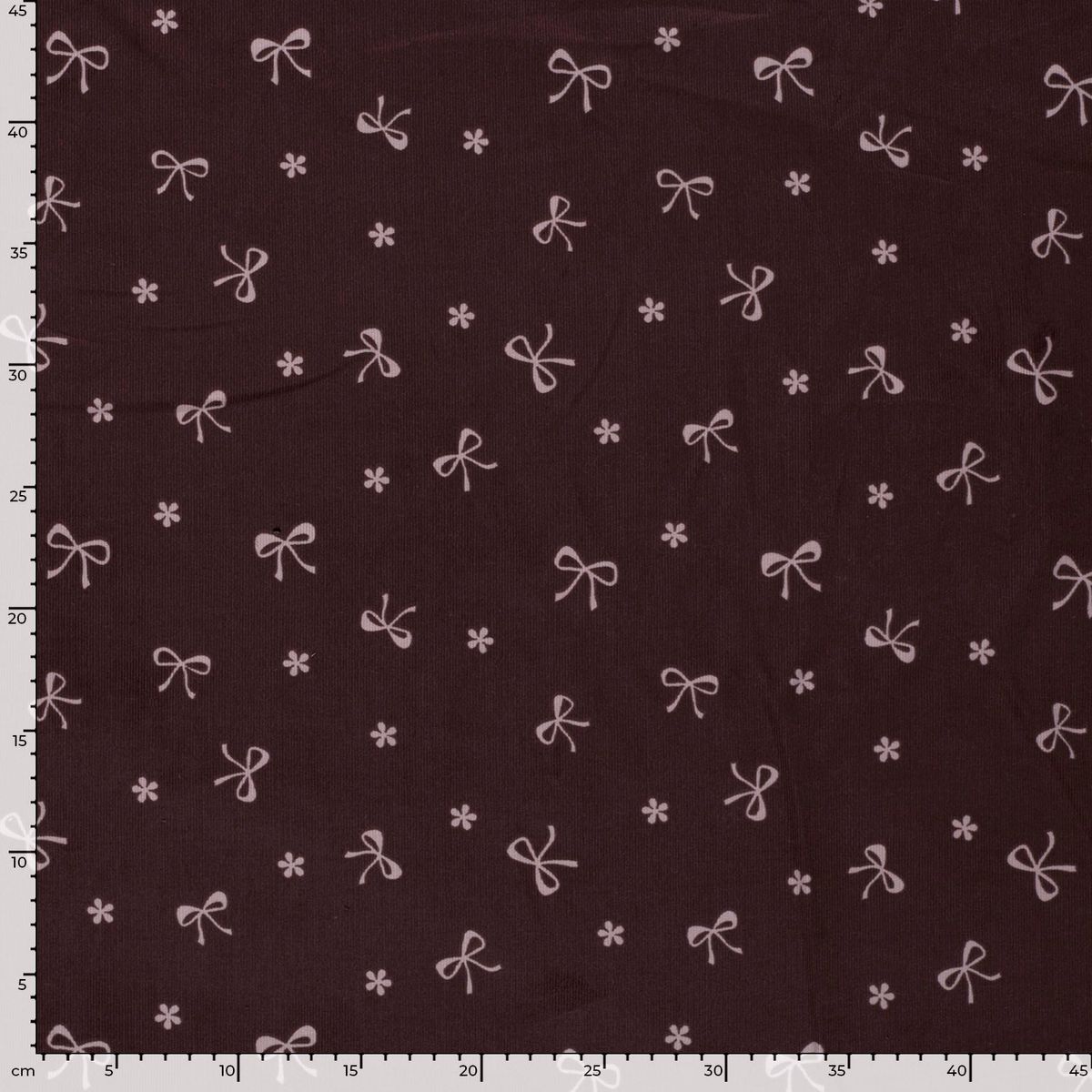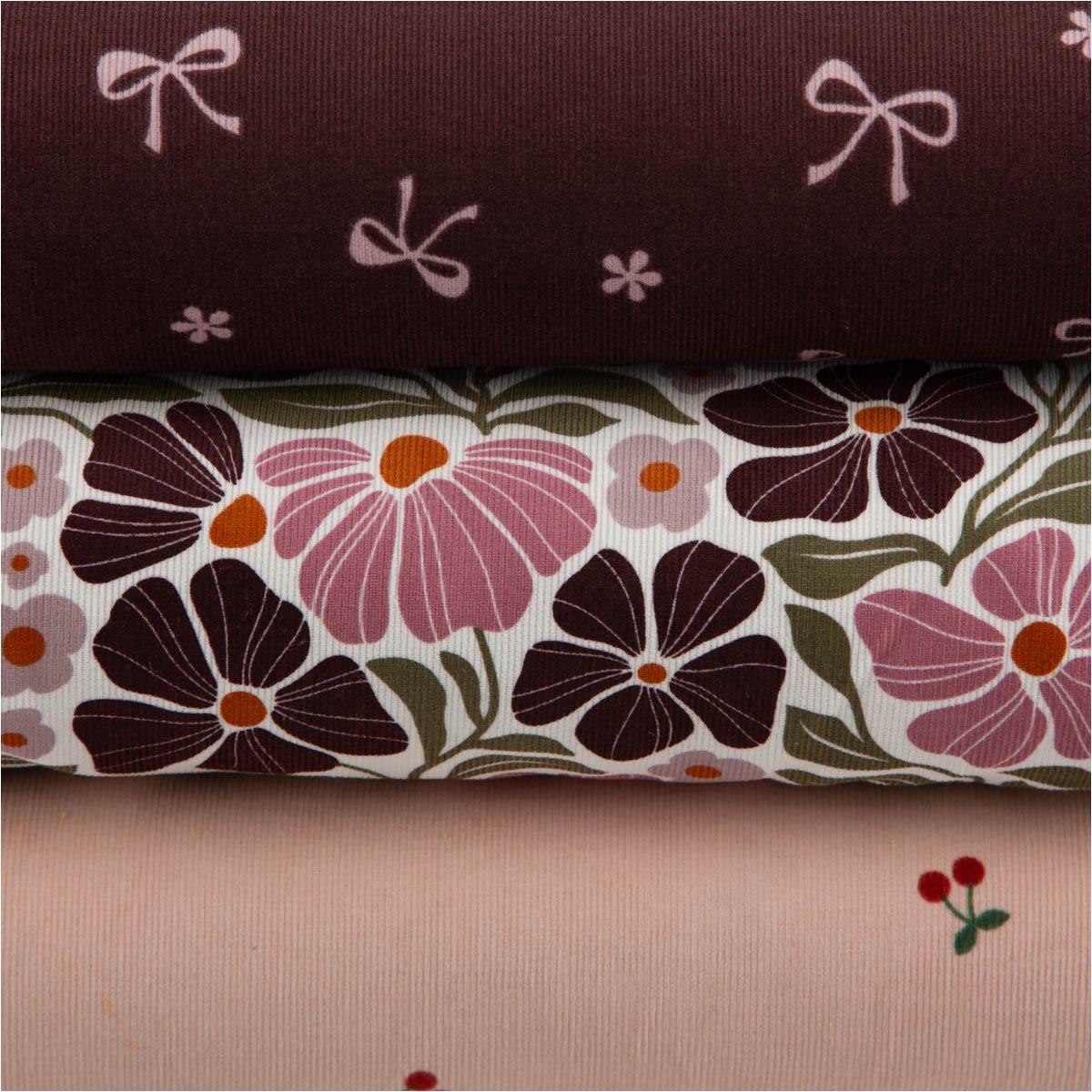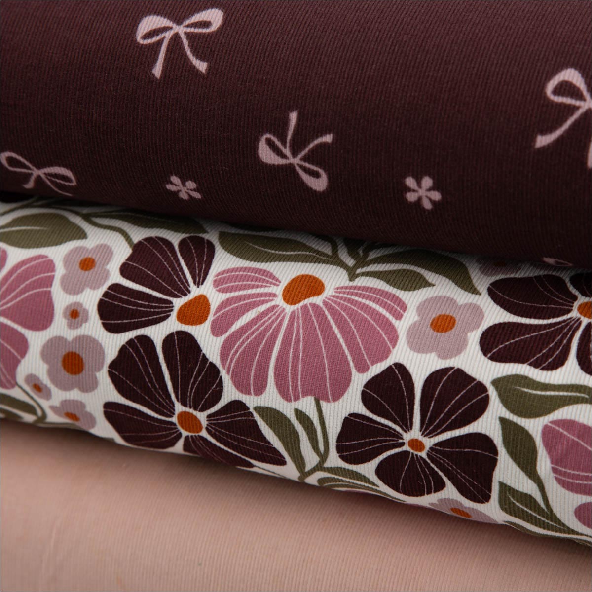 Feincord Baumwolle mit Schleifen aubergine/rosa – weich, pflegeleicht, vielseitig