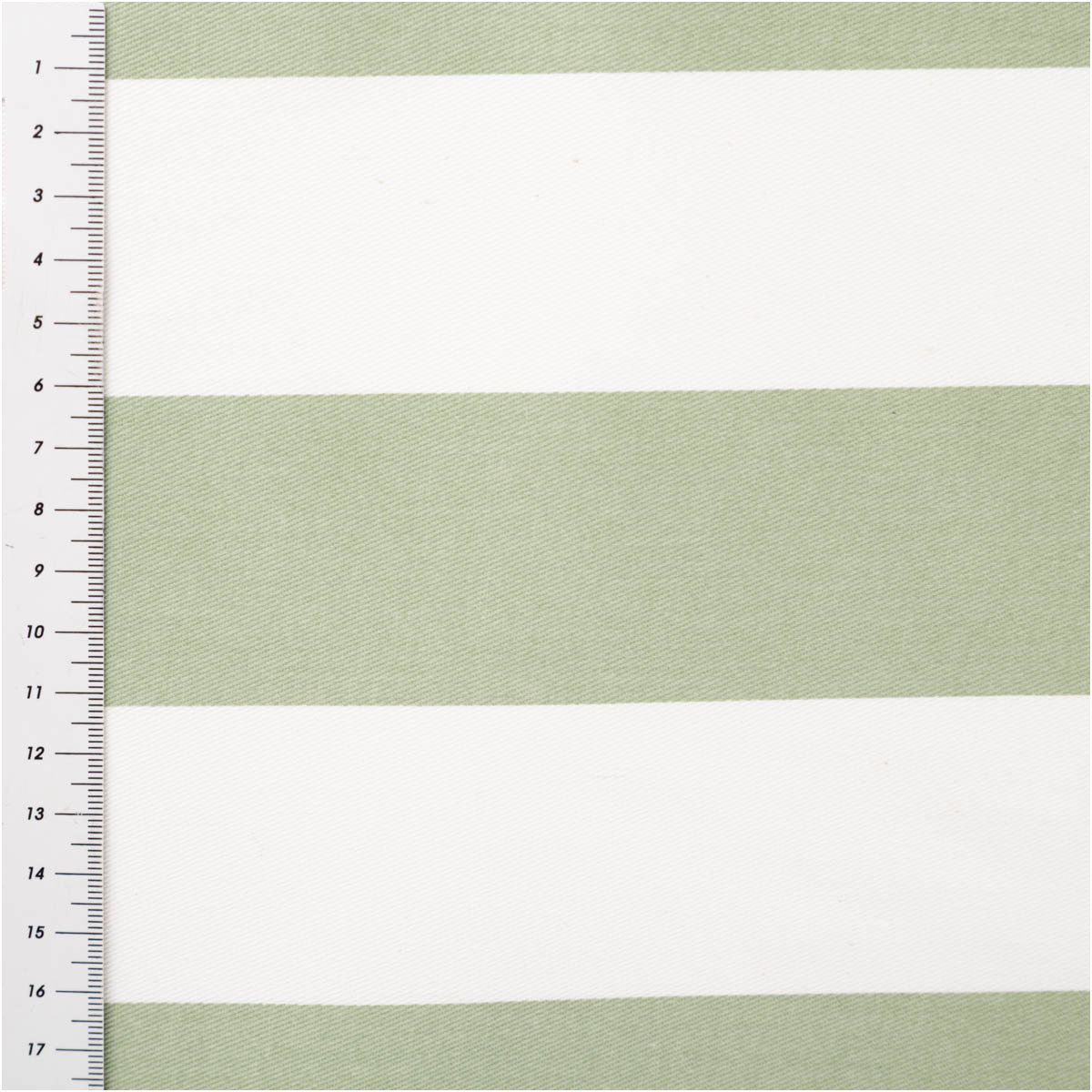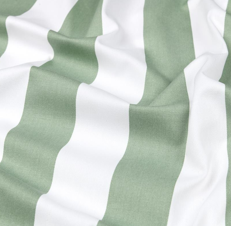 Klassischer Baumwoll-Dekostoff mit Blockstreifen in Salbeigrün und Weiß