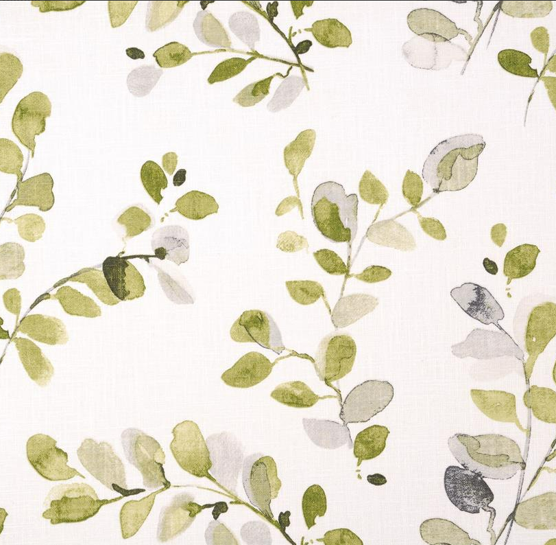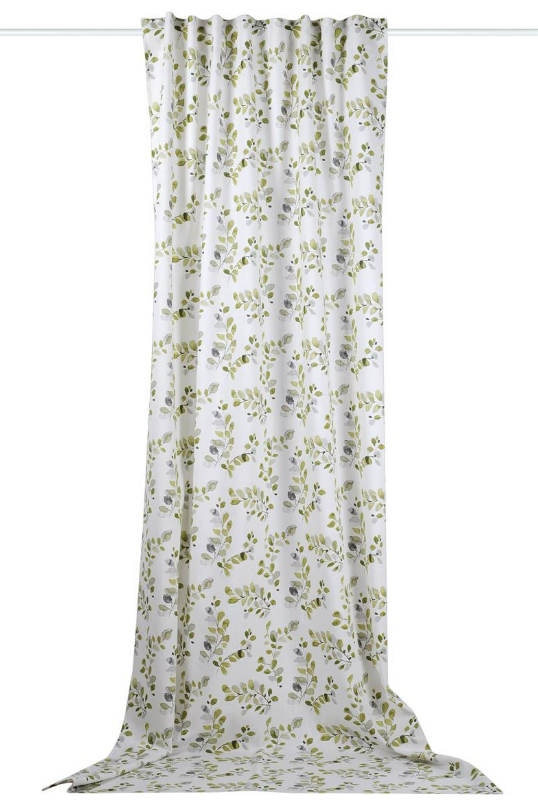 Dekostoff Ramie Leinenoptik Acacia Blätter weiß Aquarell grün 1,50m Breite