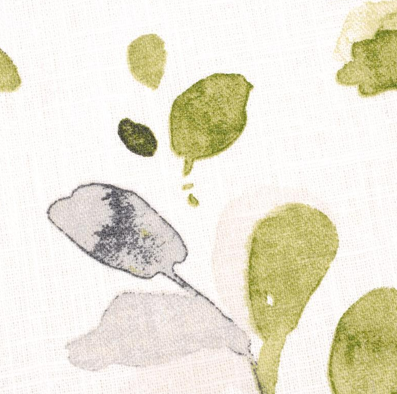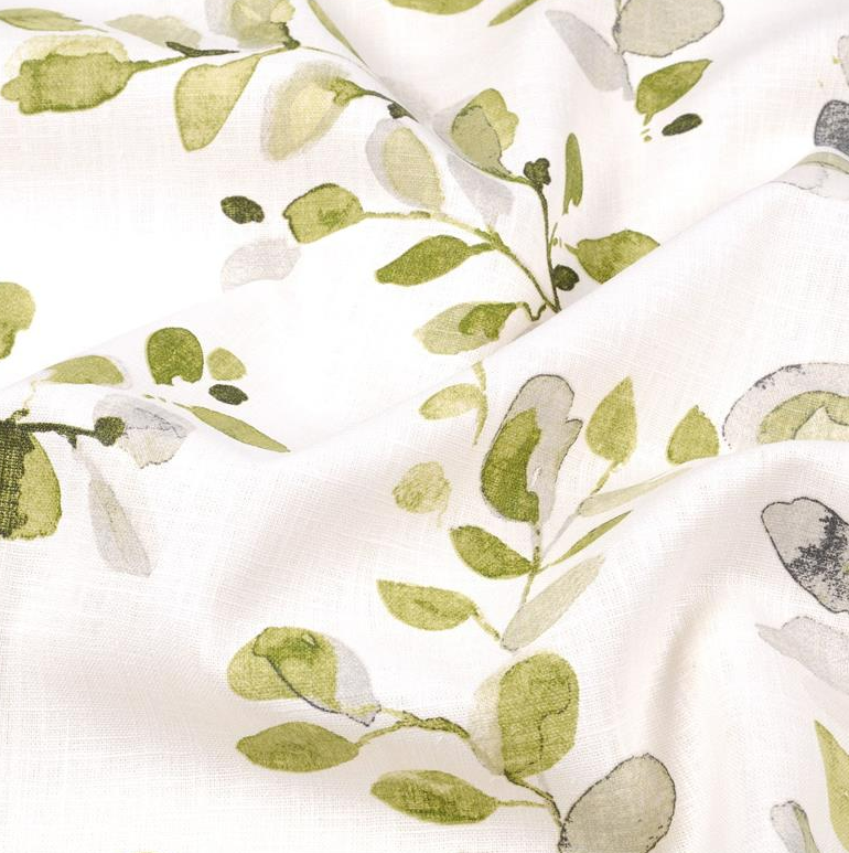 Dekostoff aus Ramie mit natürlicher Leinenoptik und Aquarell-Blätterdesign
