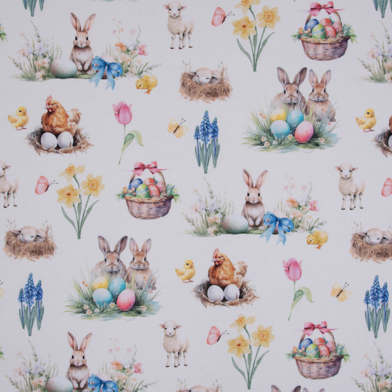 Hochwertiger Baumwoll-Dekostoff mit liebevollem Oster-Digitaldruck
