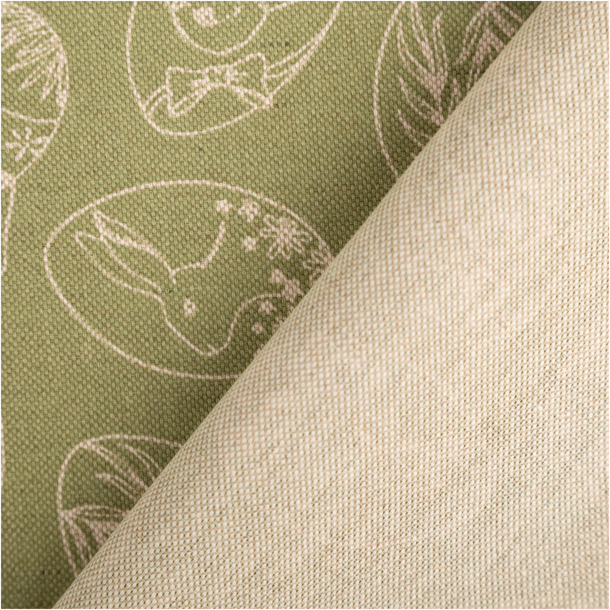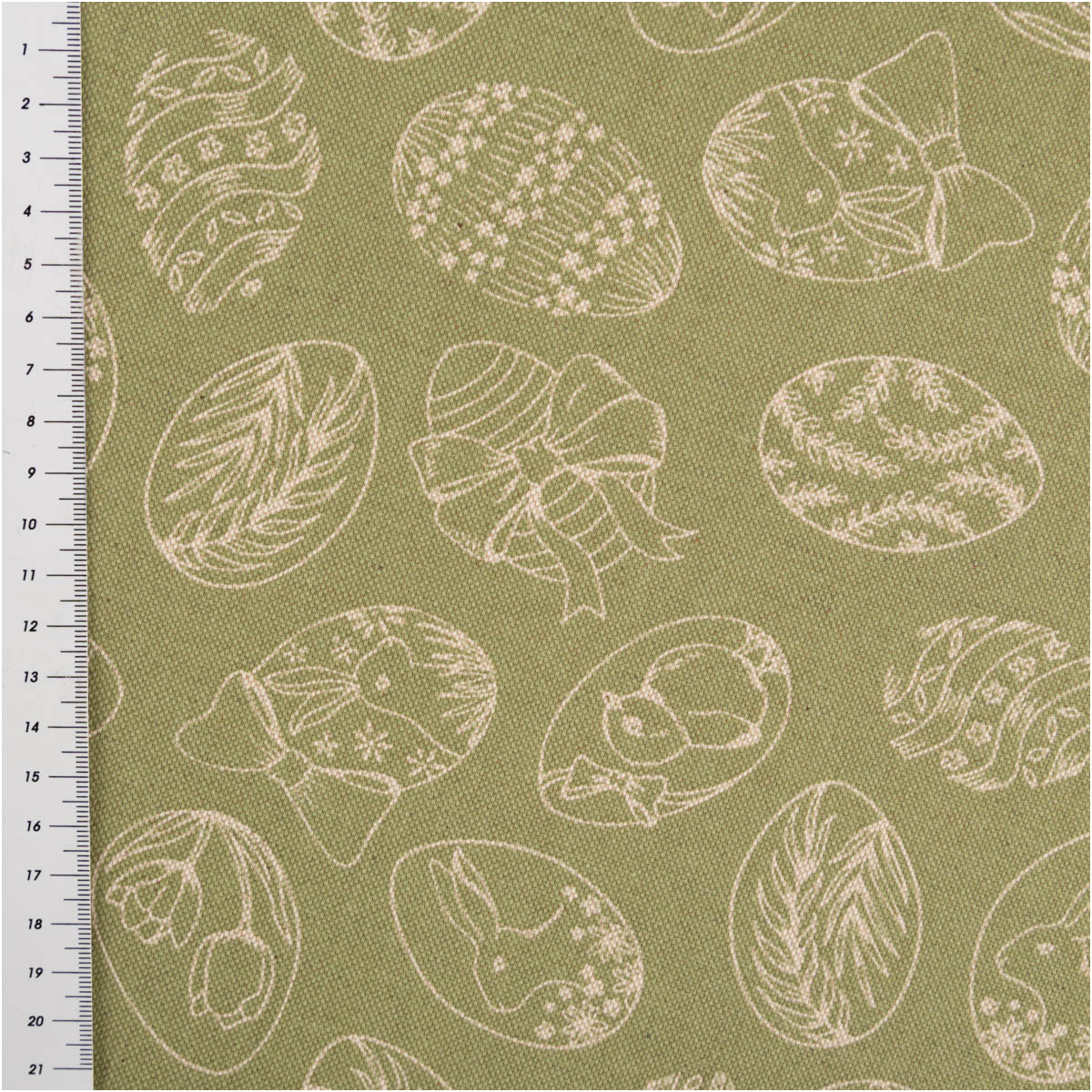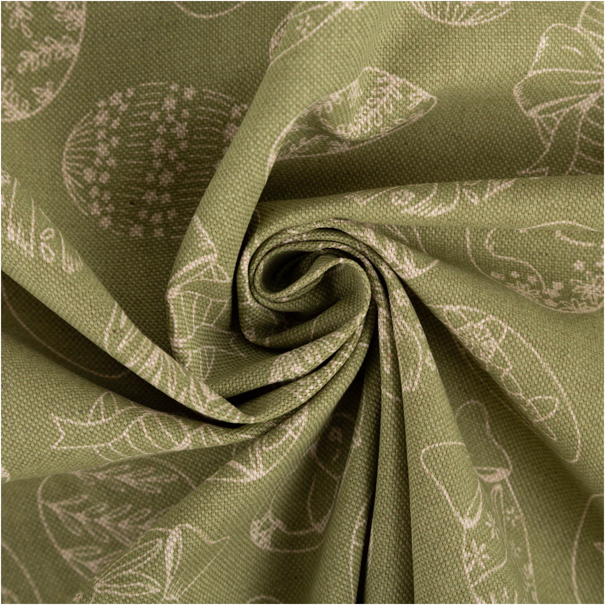 Dekostoff im Leinenlook mit feinem Ostereier-Dessin in Grün und Natur