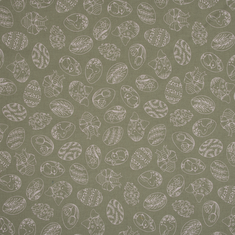 Dieser Dekostoff im Leinenlook überzeugt mit einem ruhigen, natürlichen Osterdessin. Feine, helle Linienzeichnungen von Ostereiern mit floralen und verspielten Mustern verteilen sich harmonisch auf einem grün-naturfarbenen Untergrund. Das dezente Design wirkt zeitlos und lässt sich wunderbar in moderne wie auch klassische Wohnkonzepte integrieren.