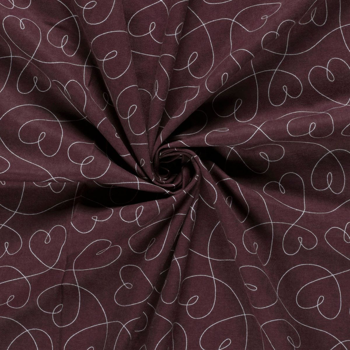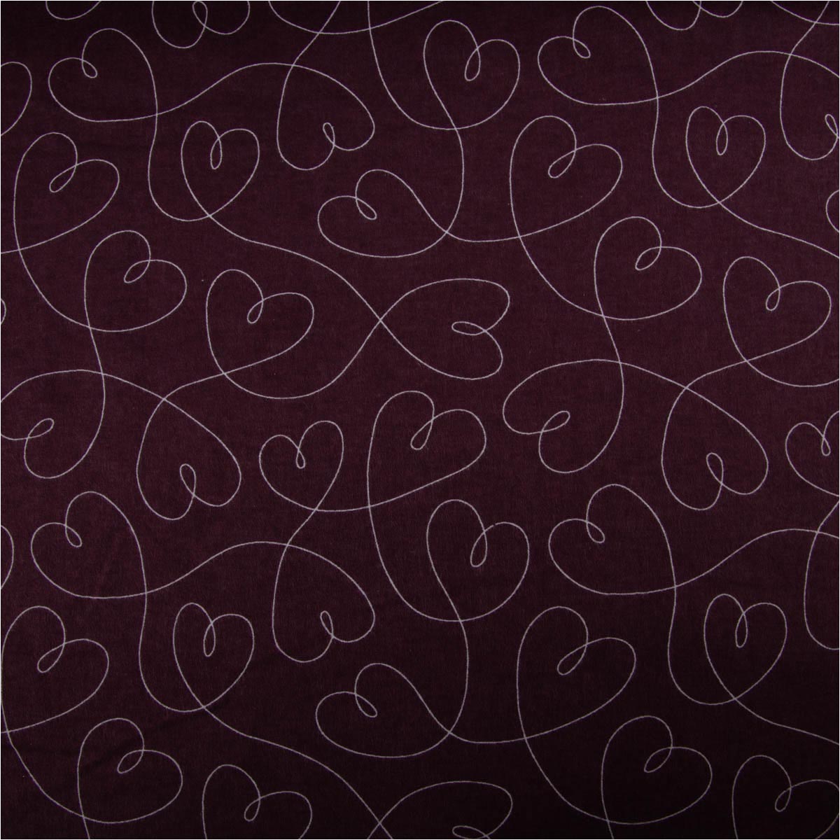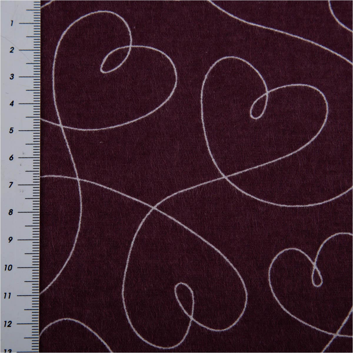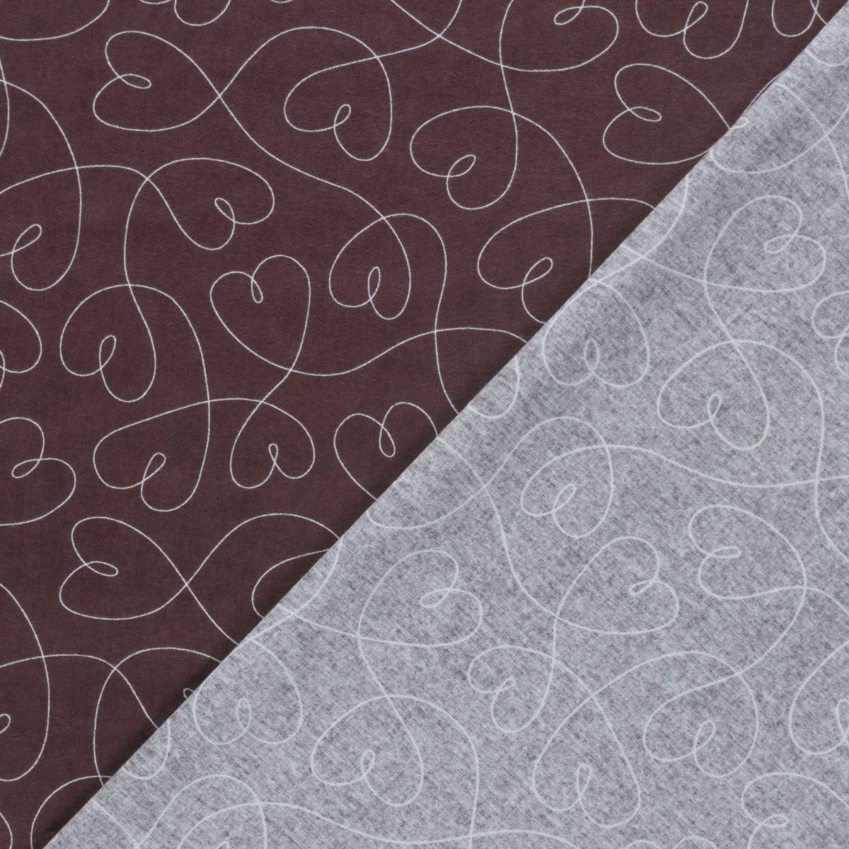 Flanell Stoff Baumwollflanell Herzen aubergine weiß 1,47m Breite