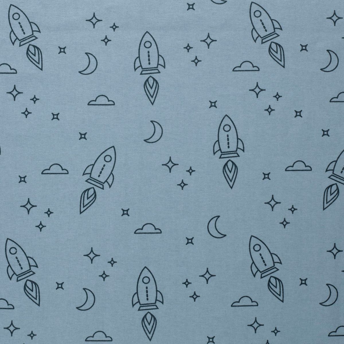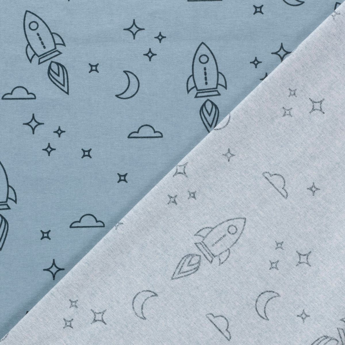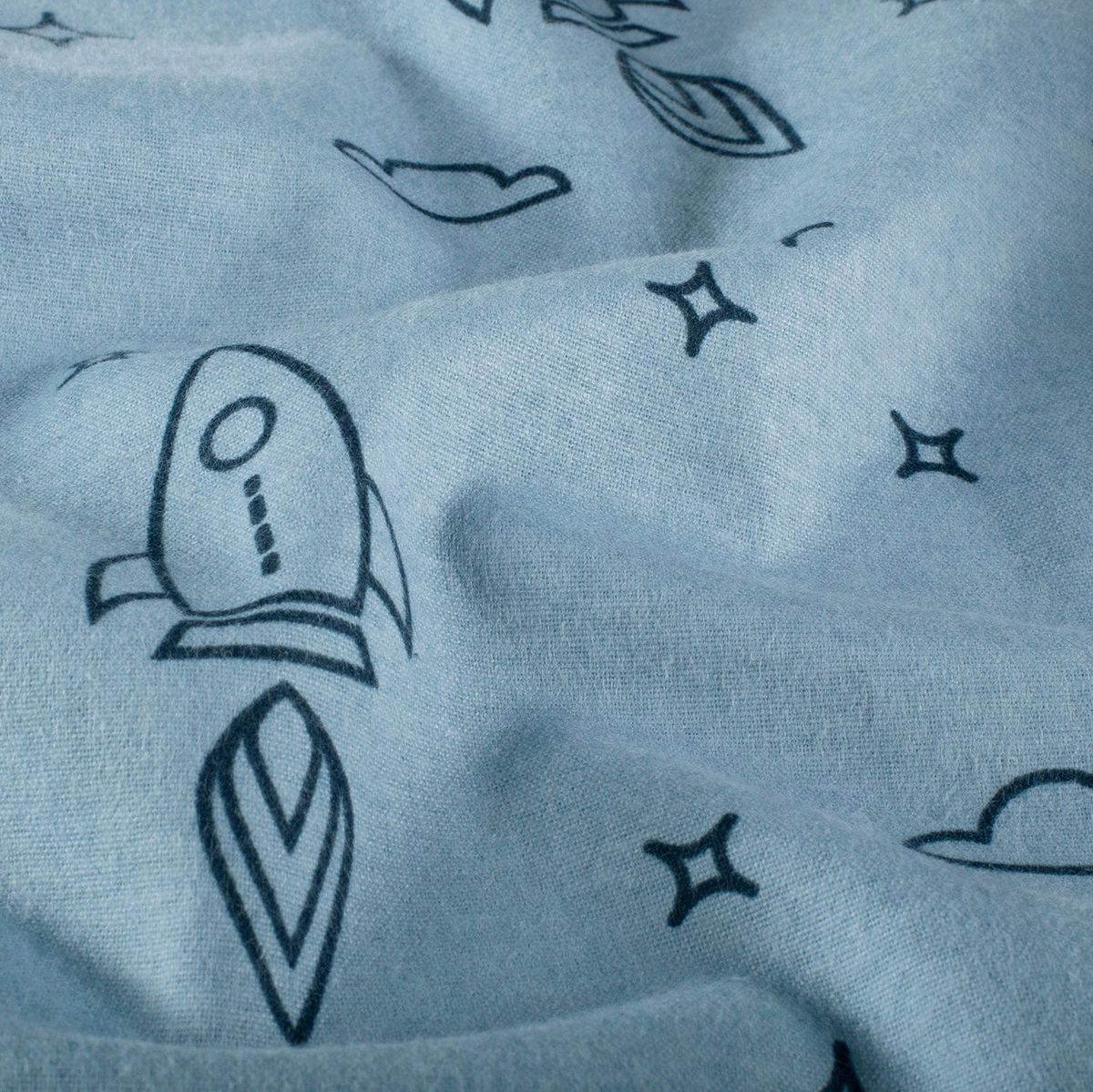 Flanellstoff aus 100% Baumwolle – Raketen hellblau, 1,47 m Breite, 165 g/qm