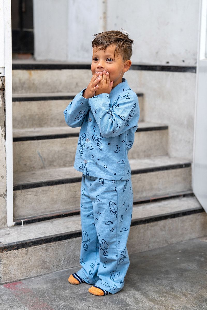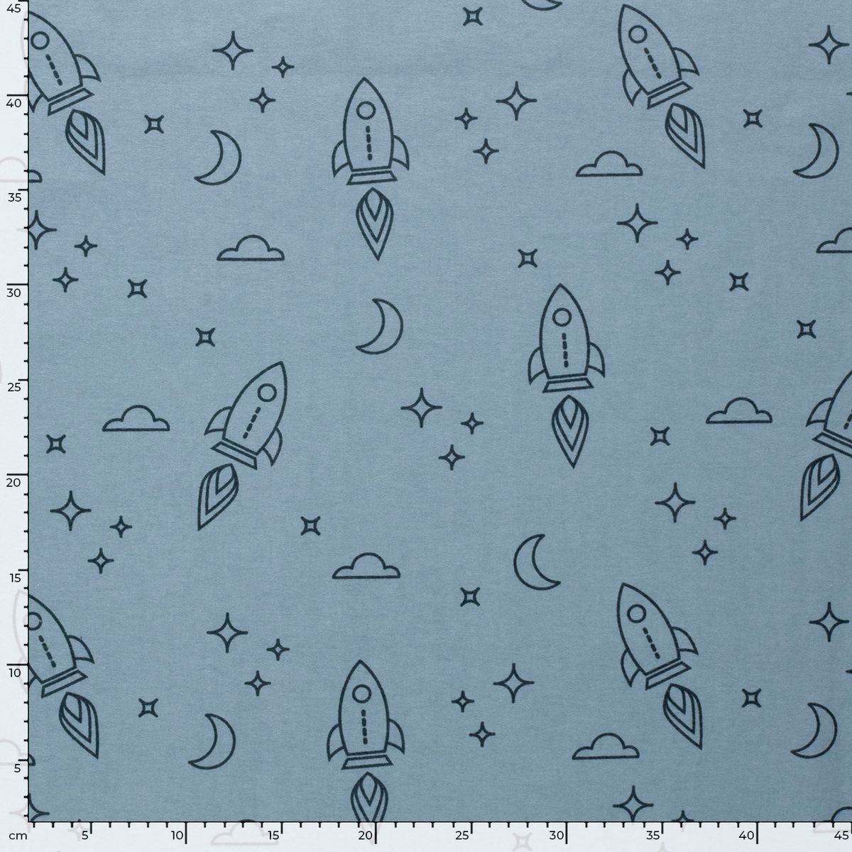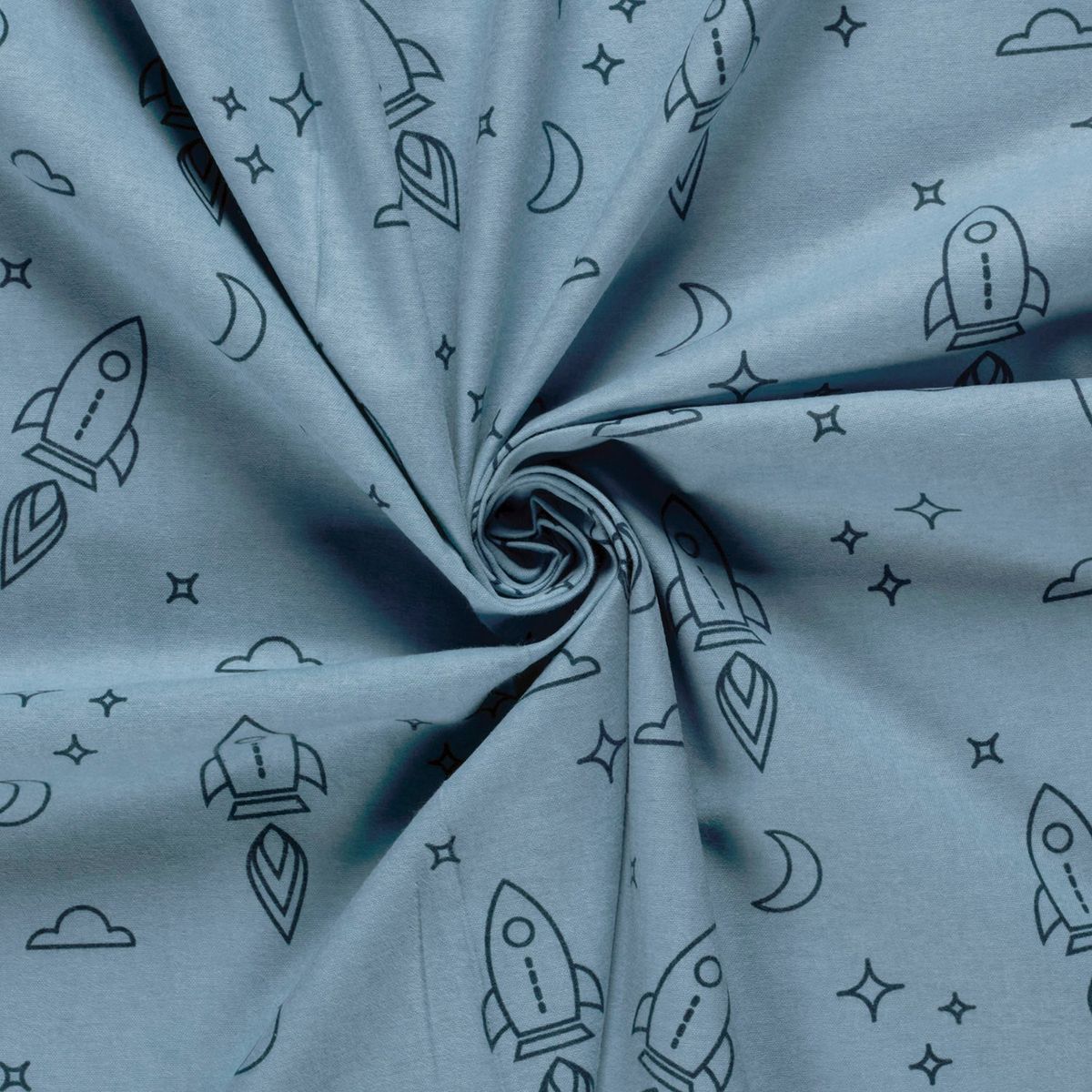 Flanellstoff aus 100% Baumwolle – Raketen hellblau, 1,47 m Breite, 165 g/qm