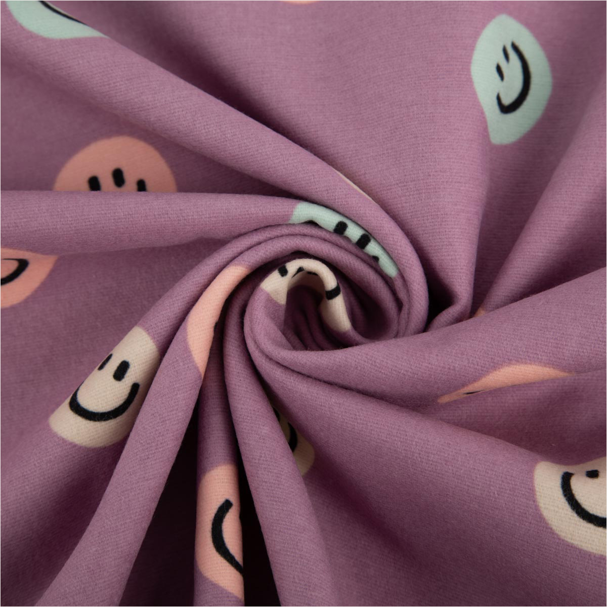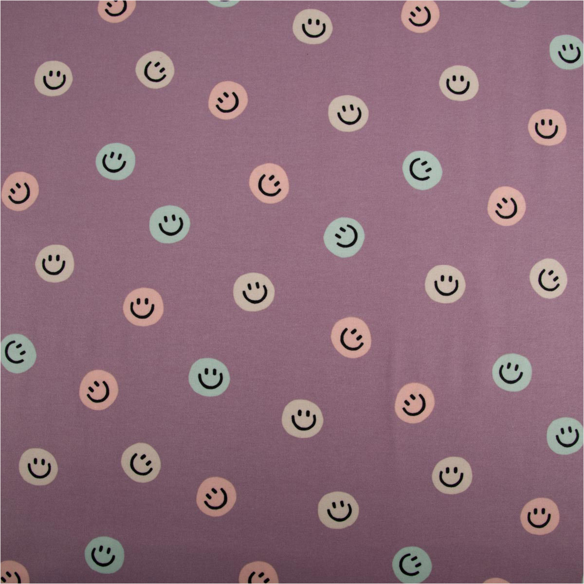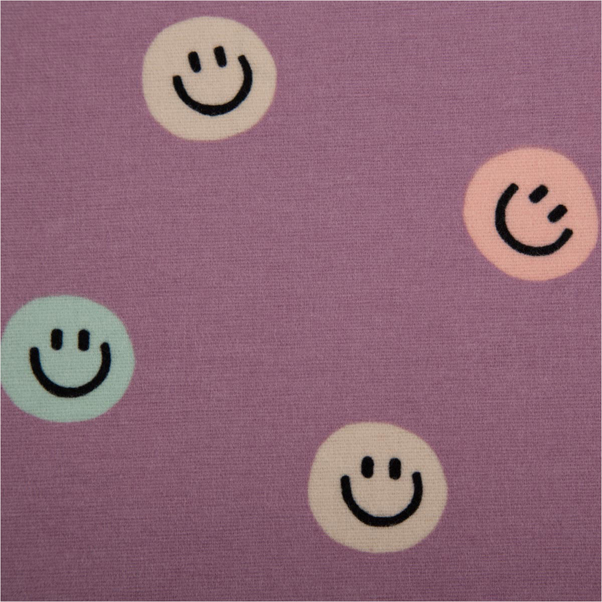 Flanellstoff aus Baumwolle Lachgesichter violett pastell 1,43m Breite