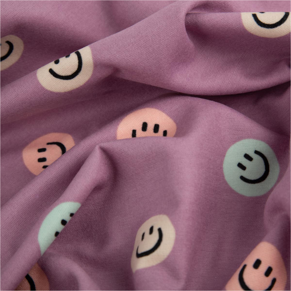 Flanellstoff aus Baumwolle Lachgesichter violett pastell – 1,43 m breit