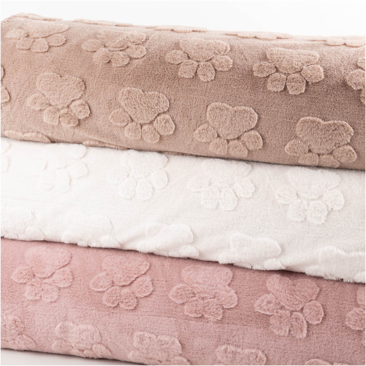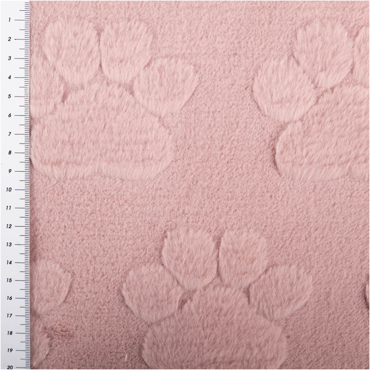 Superflauschiger Fleece Stoff mit fühlbarem 3D-Pfotenmuster in Powder Pink