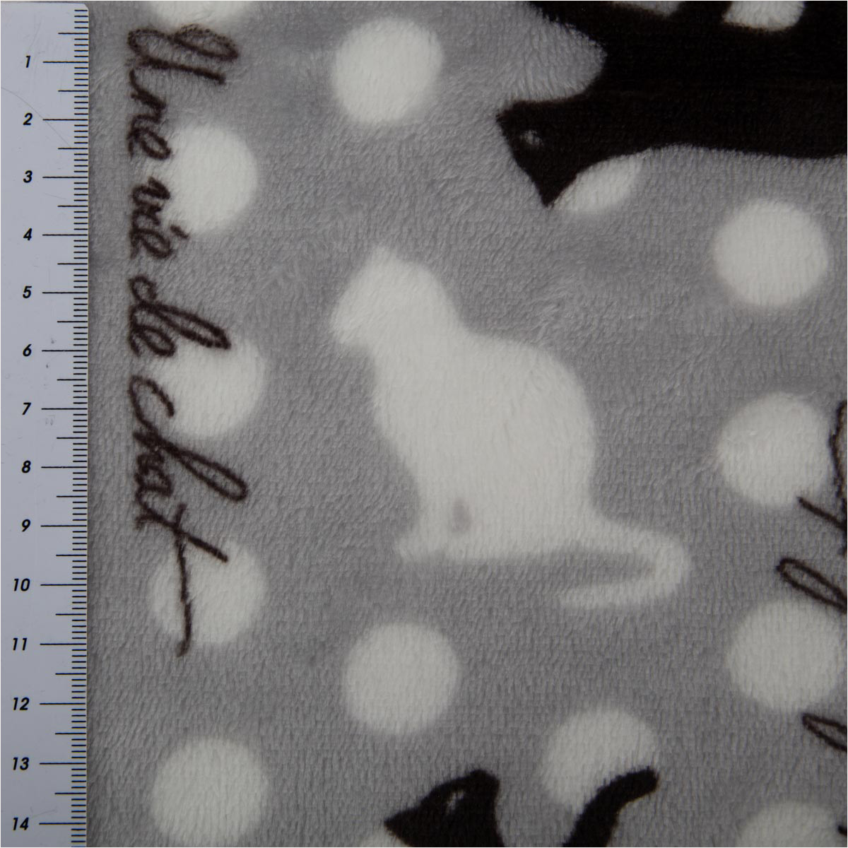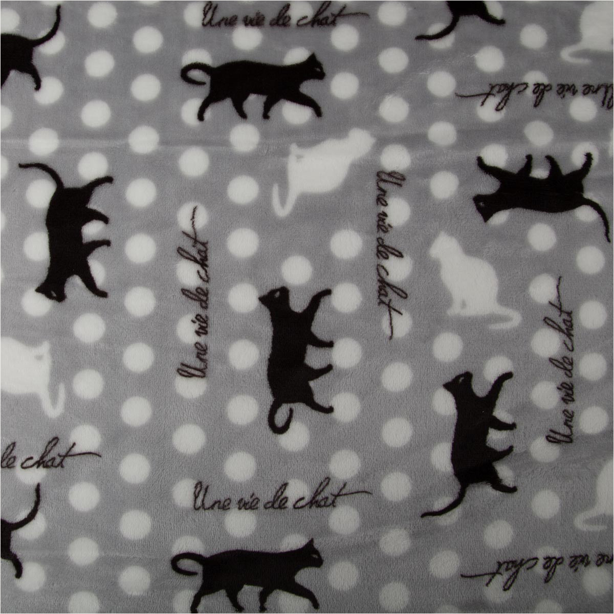 Der Fleecestoff Katzen in Grau verbindet gemütliche Wärme mit einem verspielten Allover-Design: dynamische Katzen auf Punktmuster, akzentuiert durch den Schriftzug „Une vie de chat“. Die Oberfläche ist besonders weich und volumig – ideal für Projekte, die dich durch Herbst und Winter begleiten.