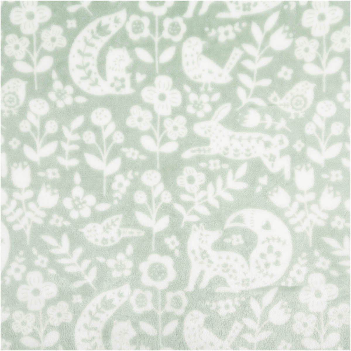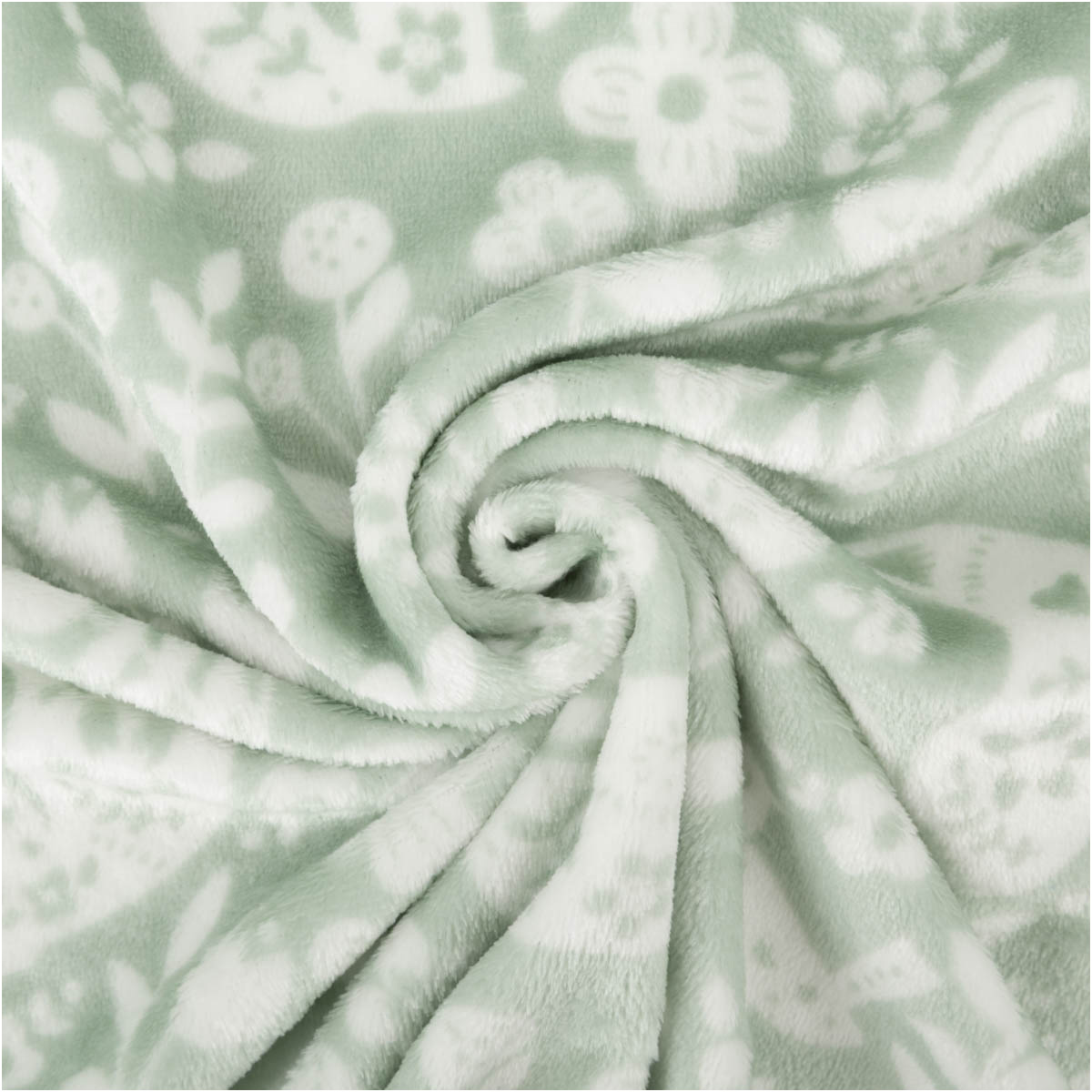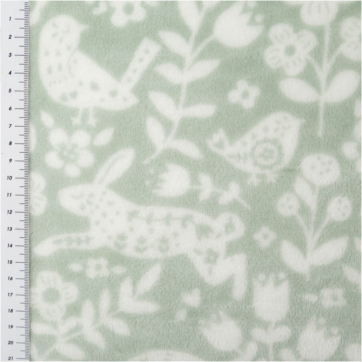 Fleecestoff Tiere & Blumen in Mintgrün – 1,45 m Breite, 260 g/qm, kuschelweich
