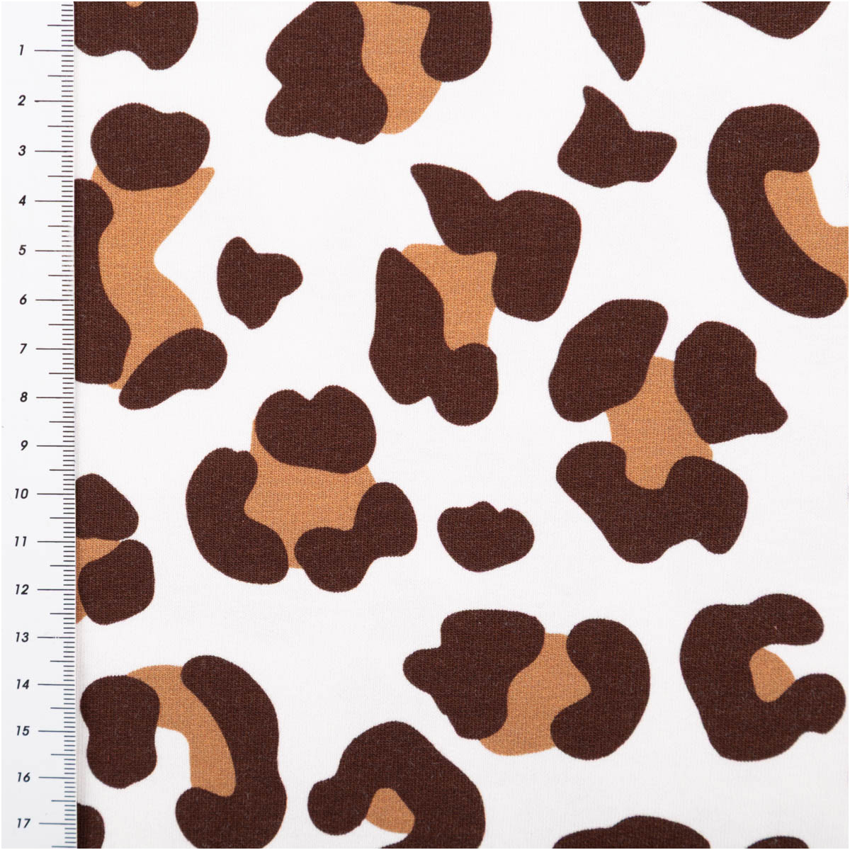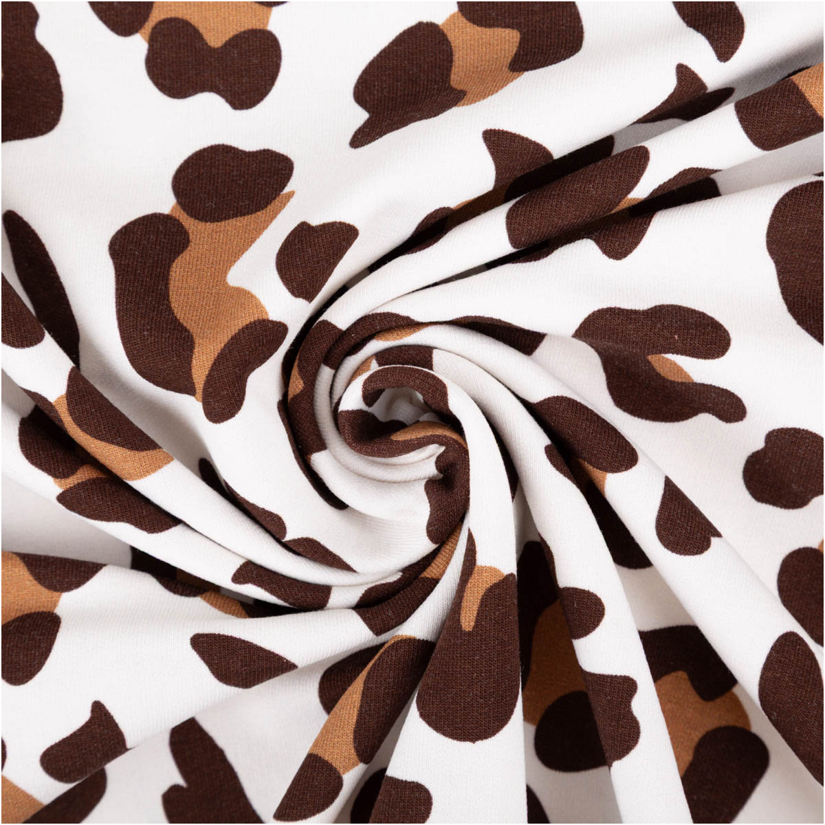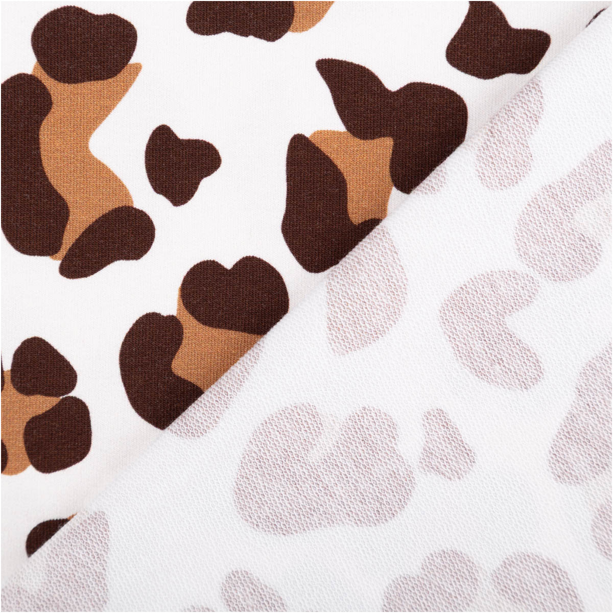 Du liebst Animalprints? Dieser French Terry mit Leo-Digitaldruck in wollweiß vereint trendigen Look mit superbequemem Tragegefühl. 1,50 m breit, 250 g/qm – perfekt für Hoodies, Shirts, Kleider und coole Kids-Outfits.