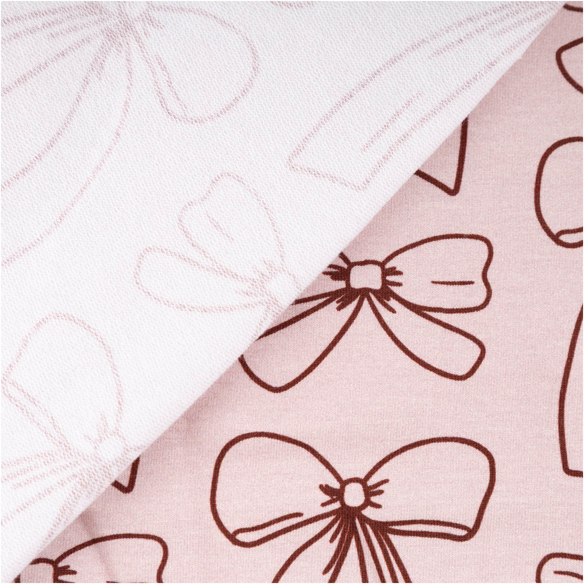 French Terry Stoff Schleifen rosa – 1,50 m Breite, elastisch & weich