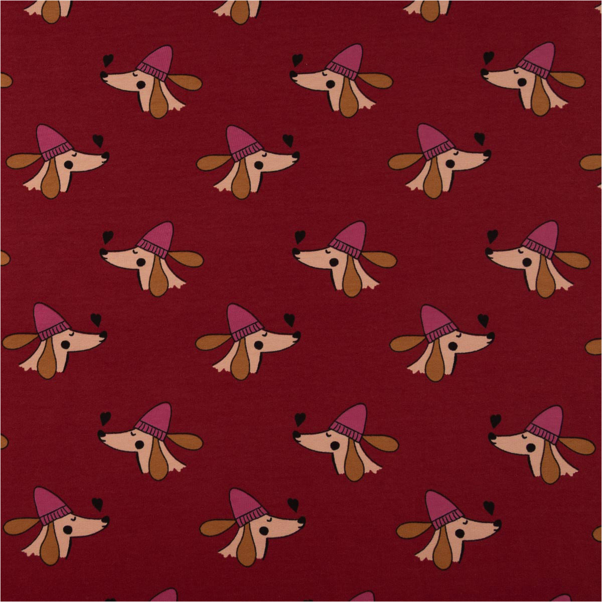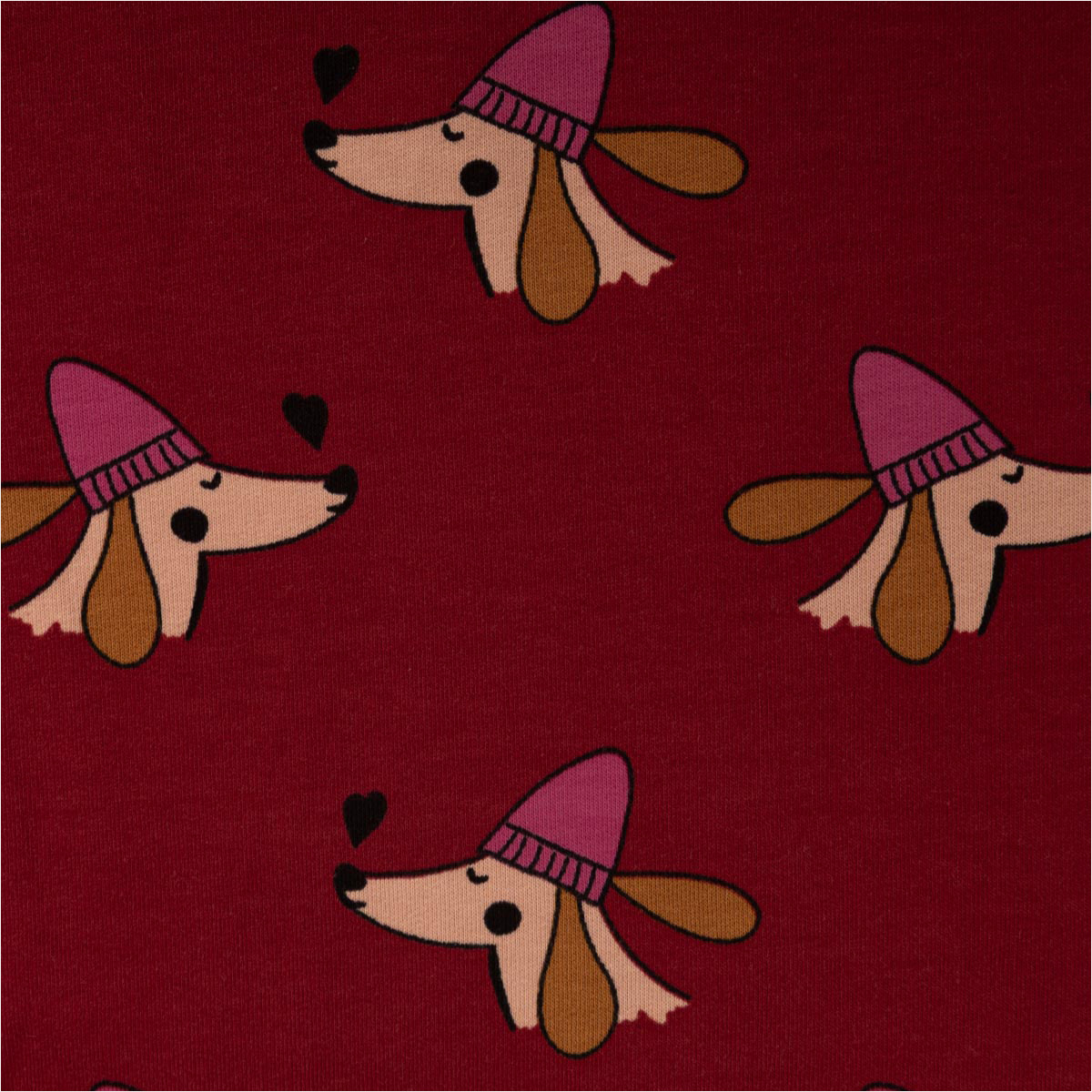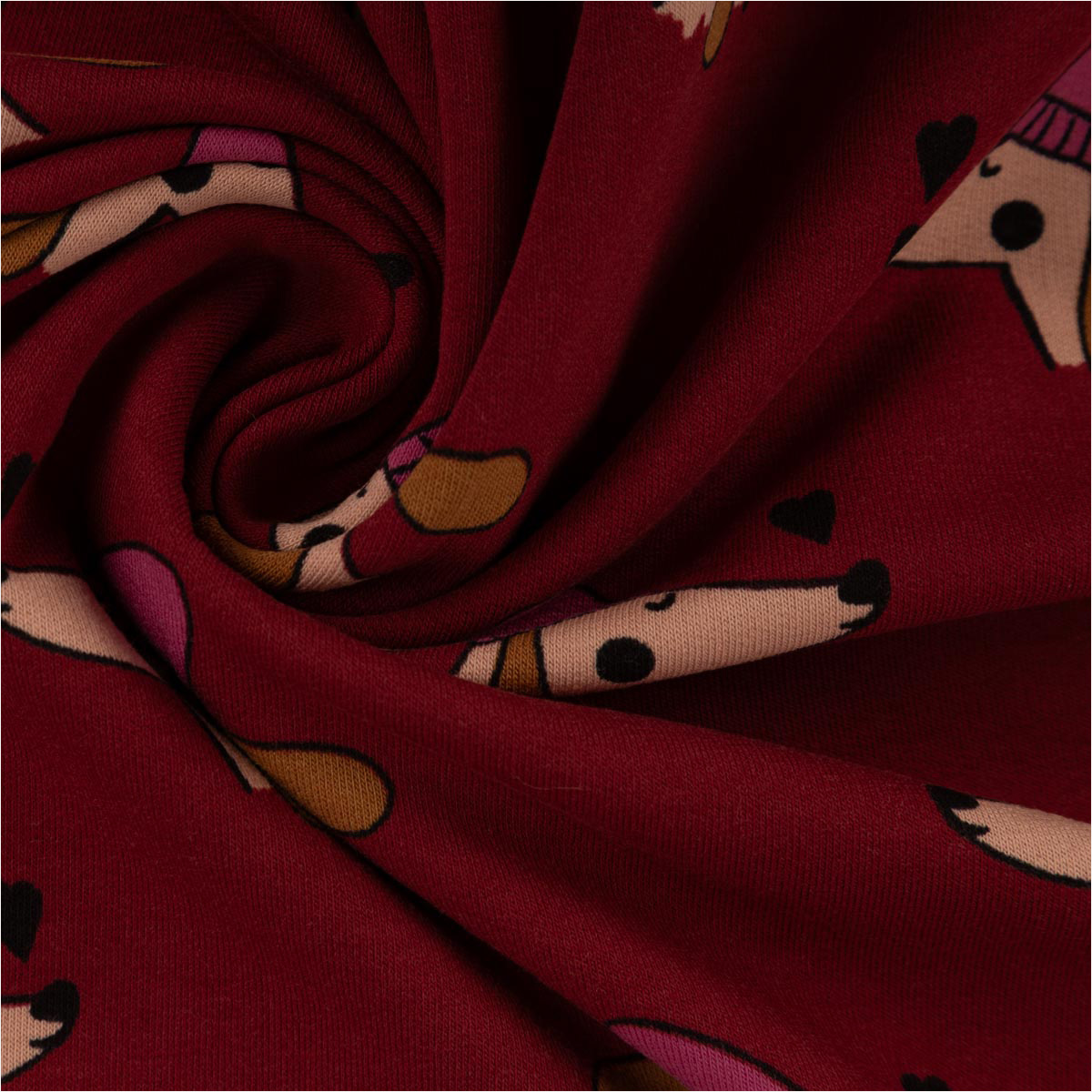 French Terry Sommersweat Dackel mit Mütze Digitaldruck rot 1,48m Breite