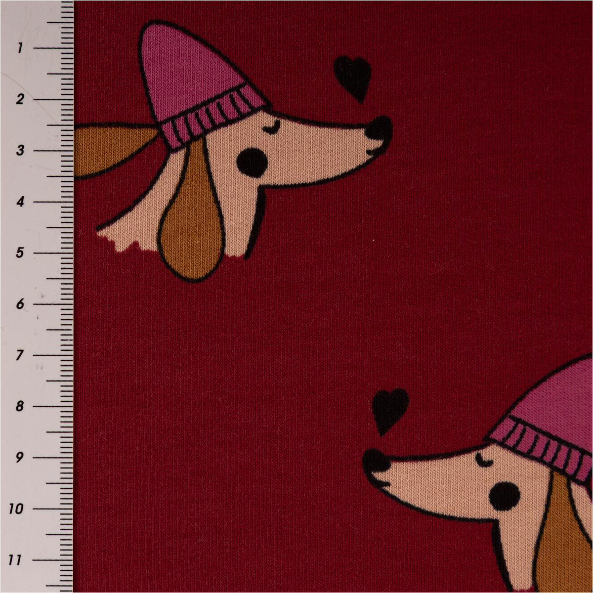 French Terry Sommersweat „Dackel mit Mütze“ rot – Digitaldruck, 1,48 m Breite