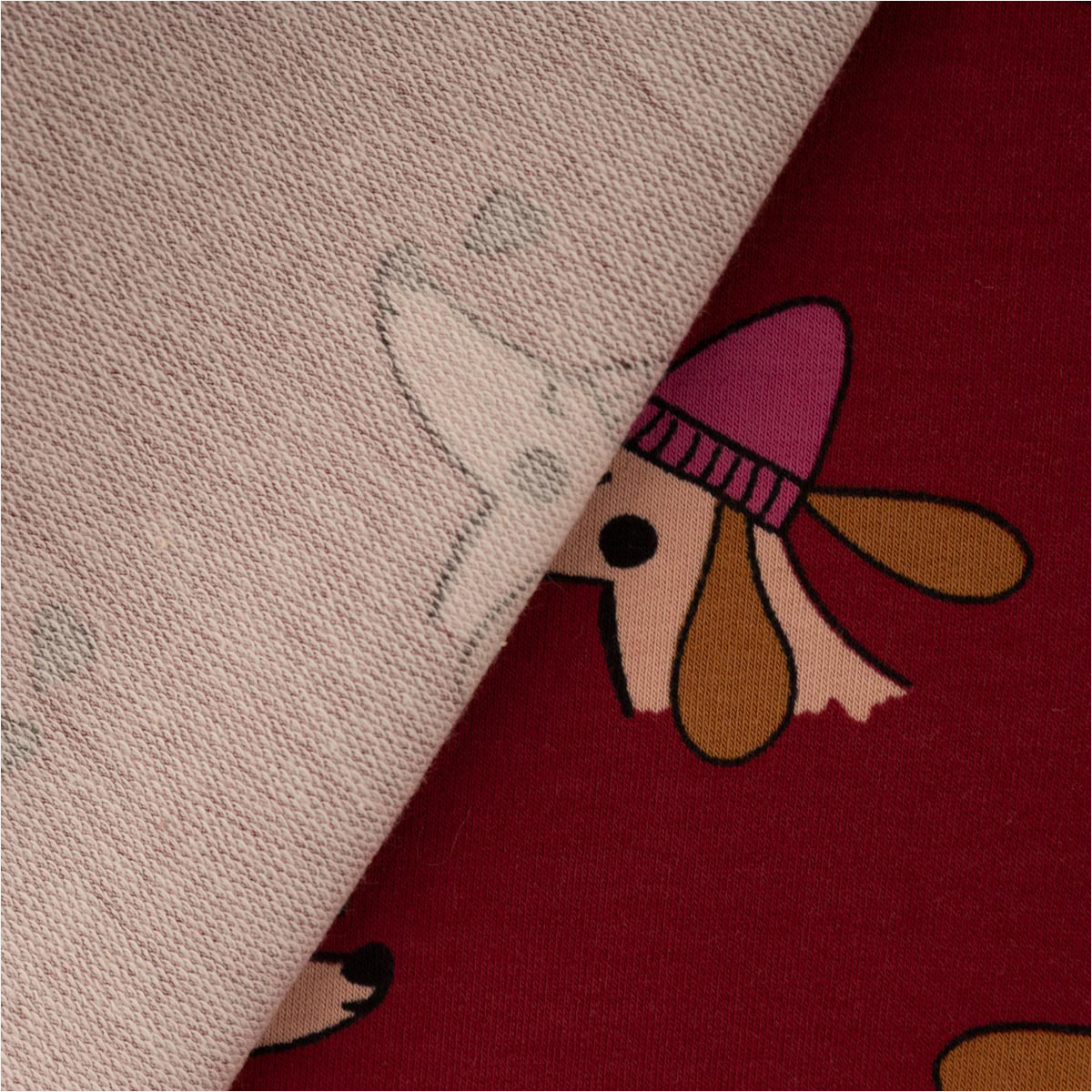 du liebst tierische Prints? Dieser French Terry zeigt süße Dackel mit Mütze auf rotem Grund. Der Stoff ist weich, elastisch und angenehm wärmend – perfekt für gemütliche Looks für groß und klein.