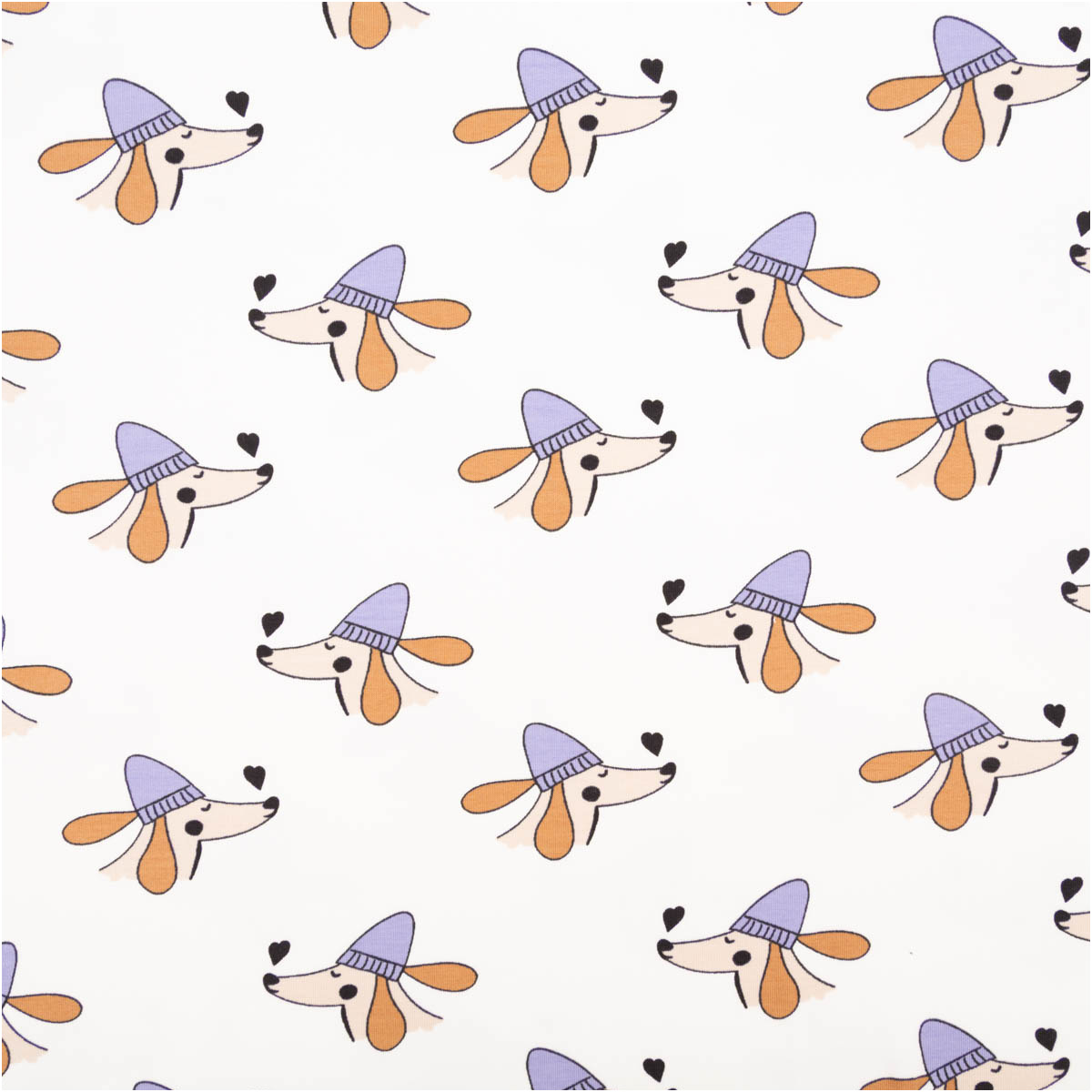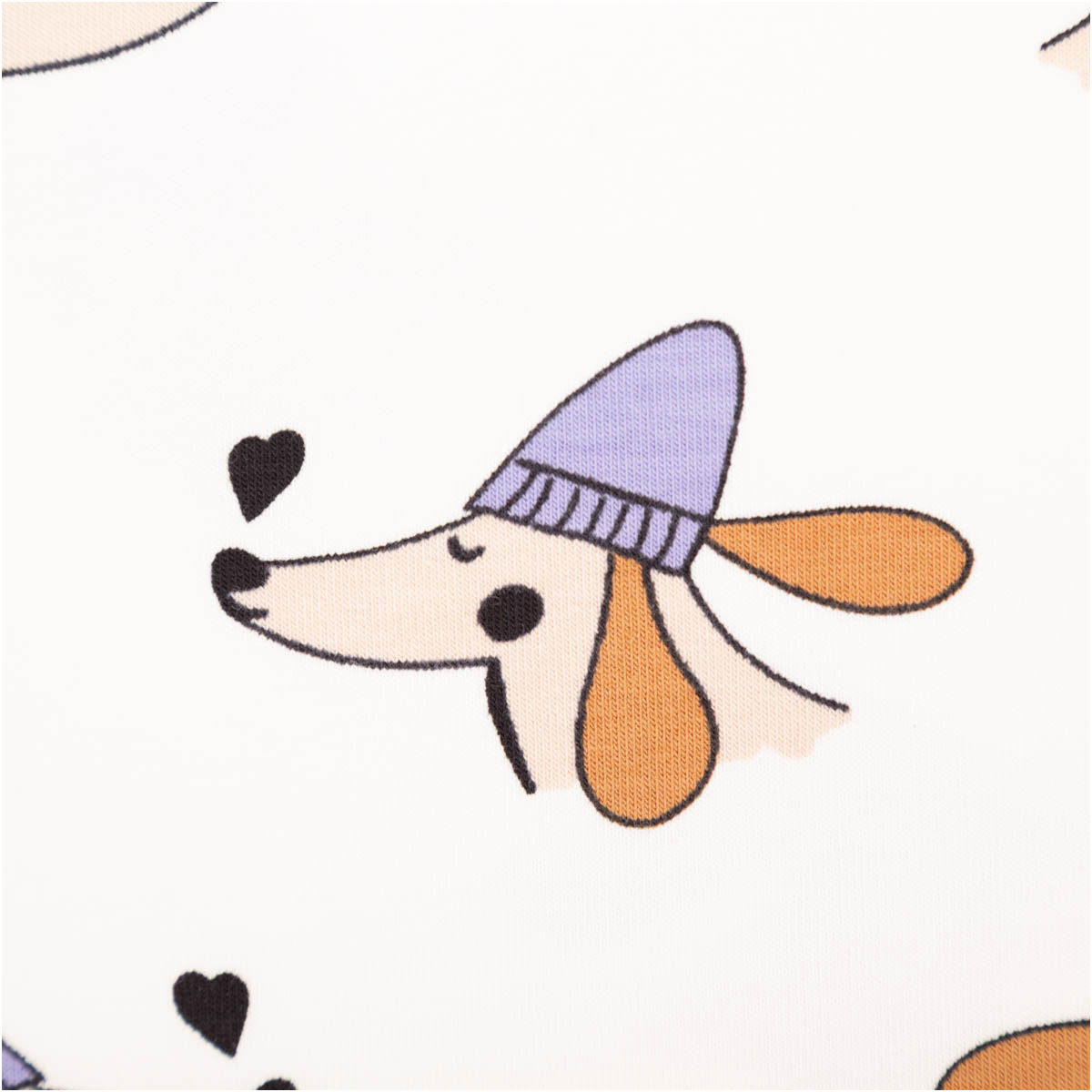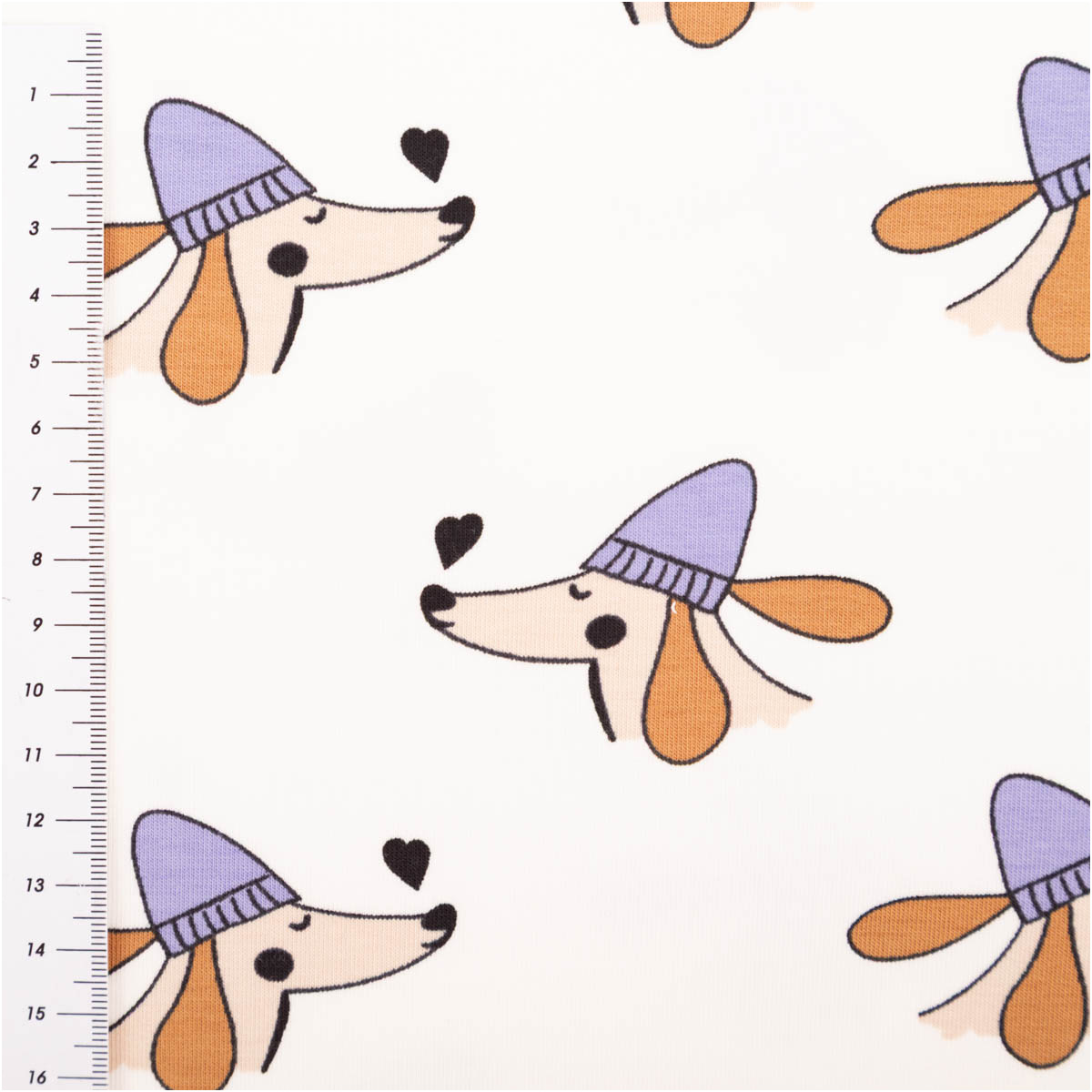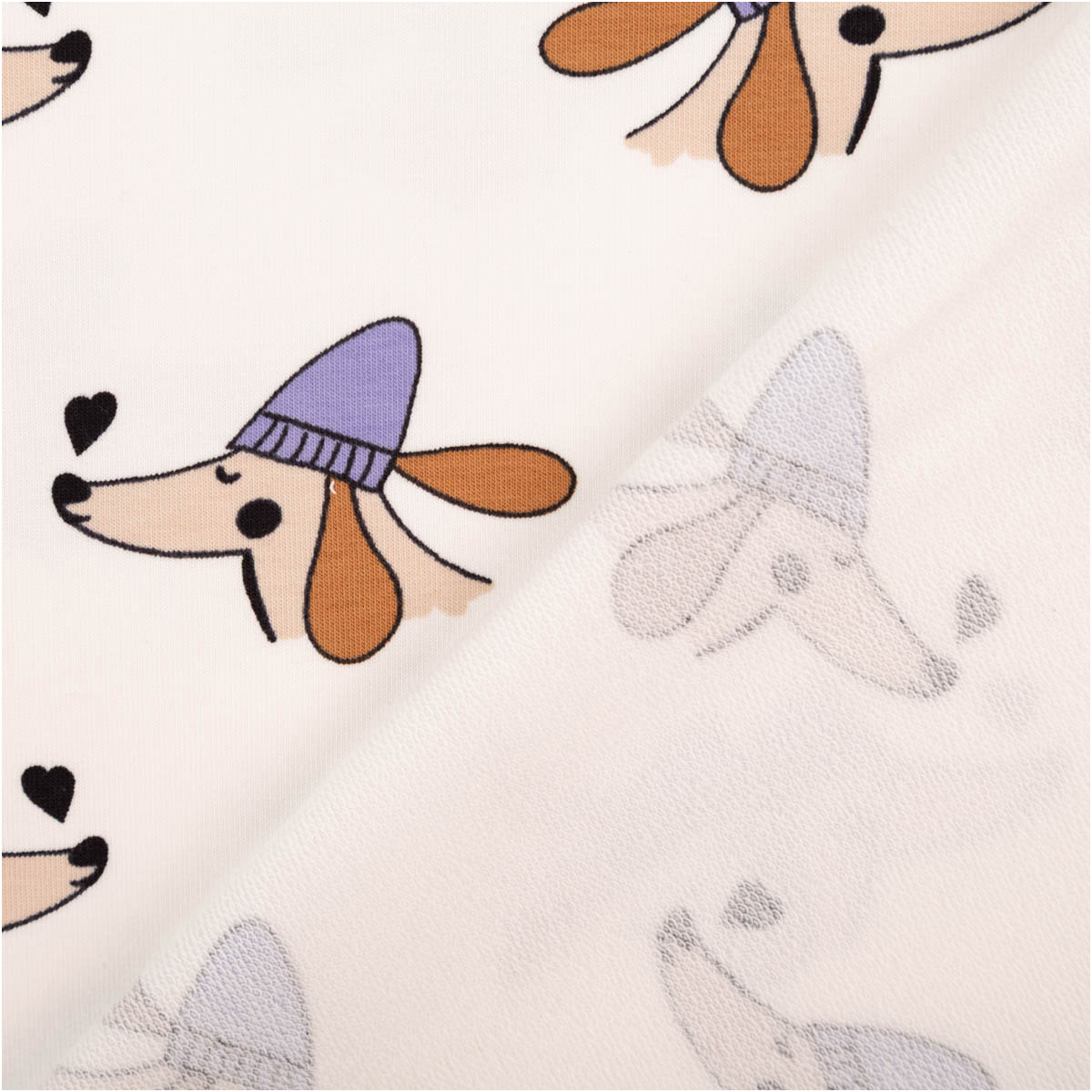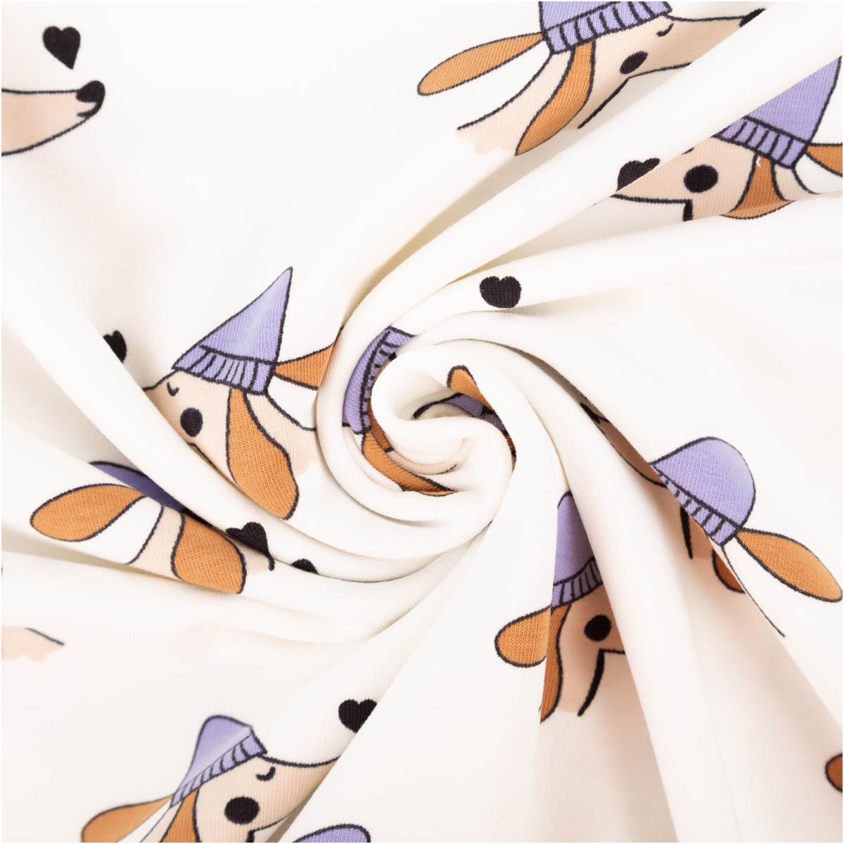 French Terry Sommersweat Dackel mit Mütze Digitaldruck wollweiß 1,48m Breite
