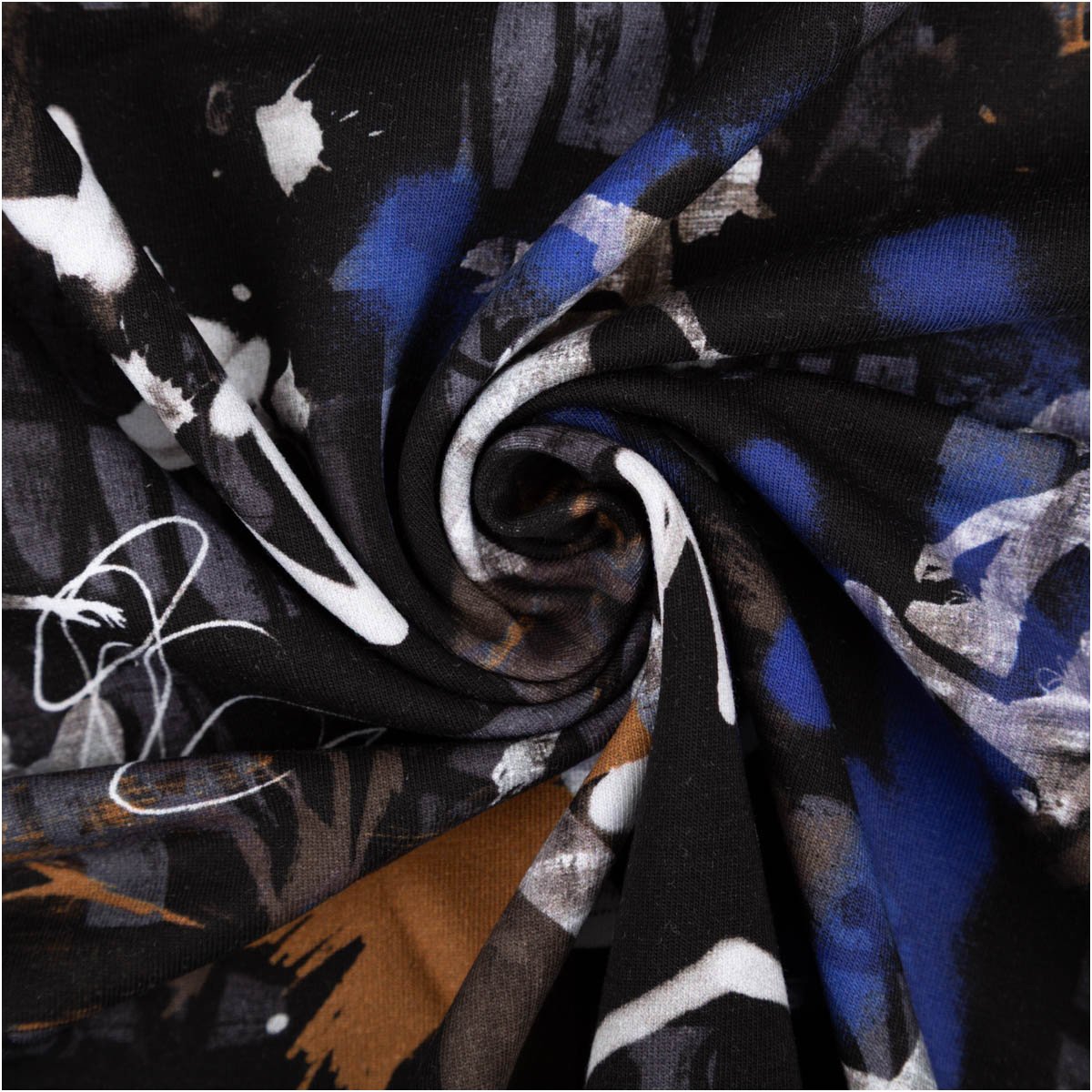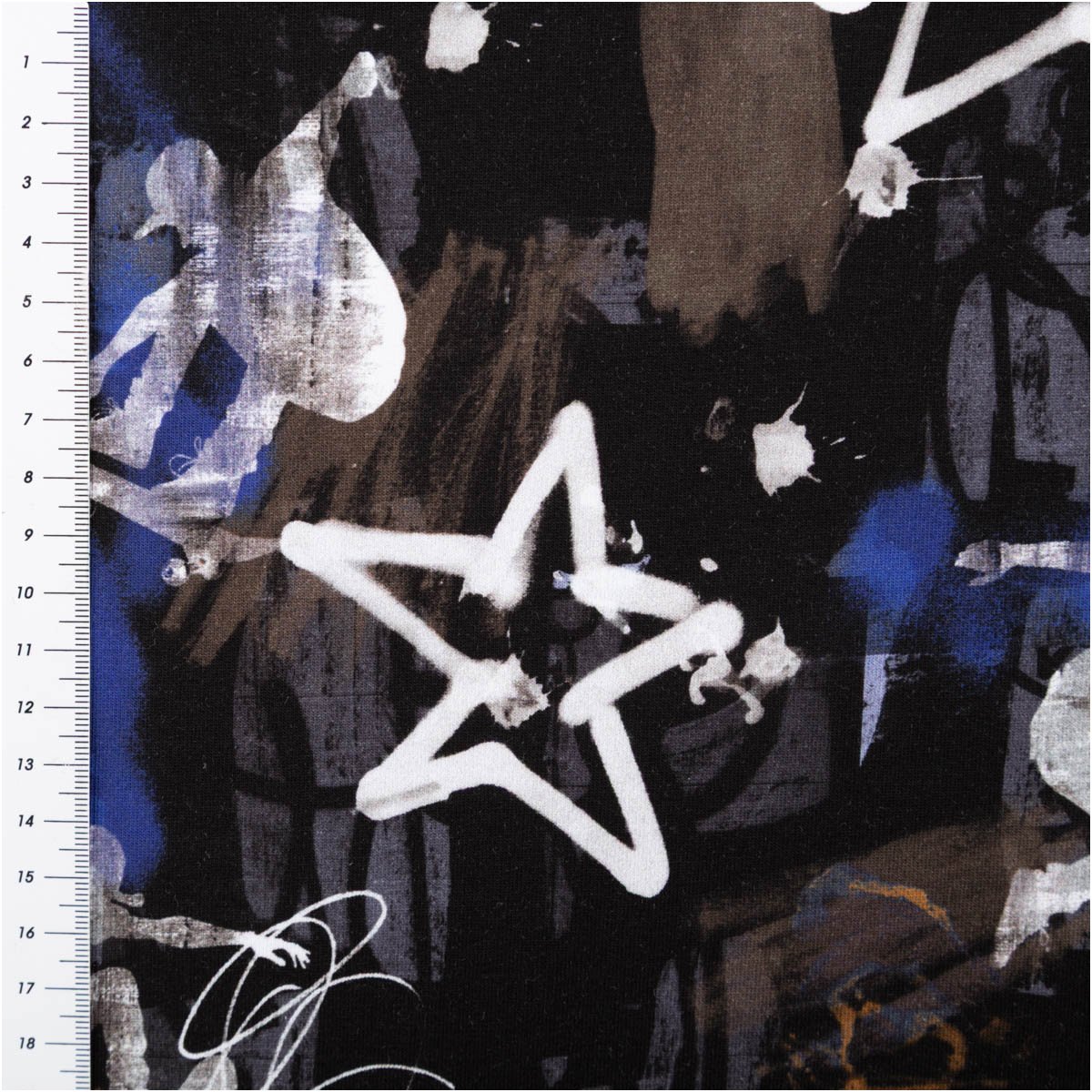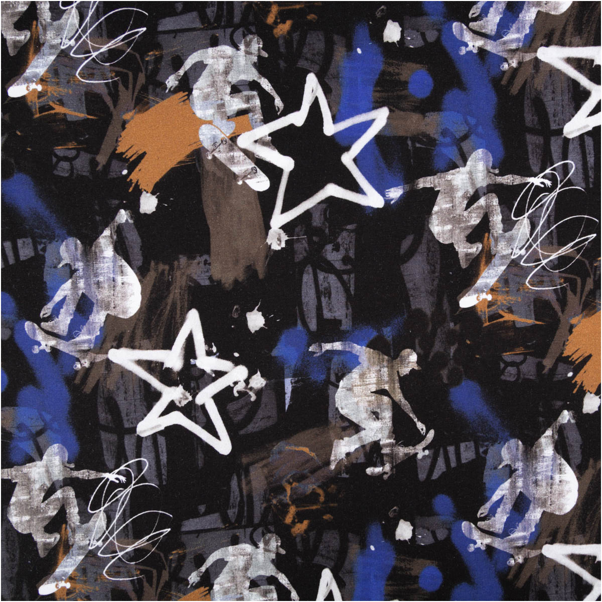 du magst lässige Prints? Dieser French Terry aus der Poppy Kollektion zeigt dynamische Skater-Motive mit Graffiti-Effekten auf schwarzem Grund. Der Stoff ist weich, elastisch und ideal für bequeme Freizeitlooks.