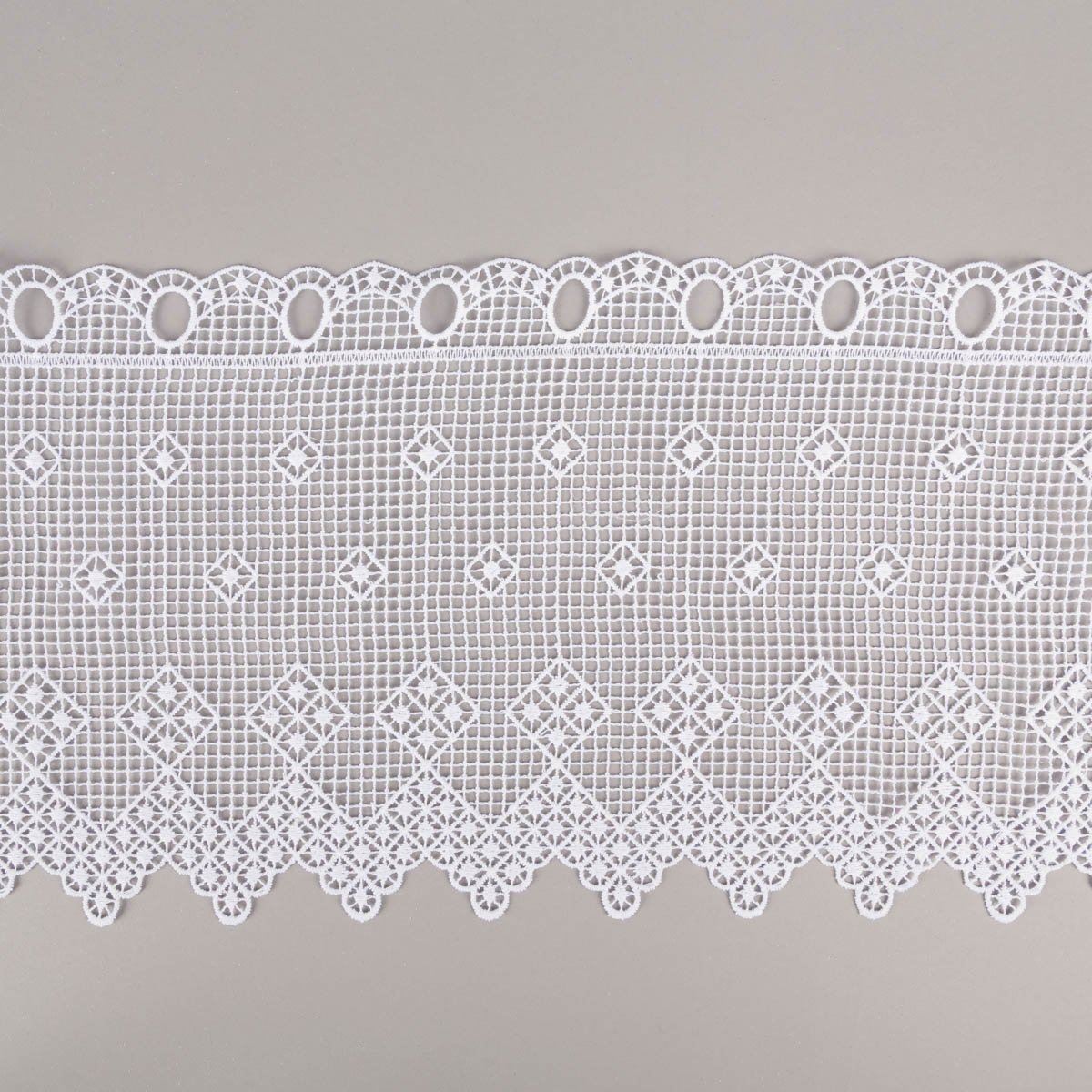 Scheibengardine Häkelspitze Stickerei Pik Karo weiß 26 cm Breite