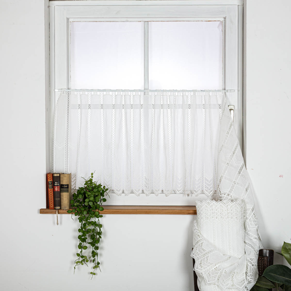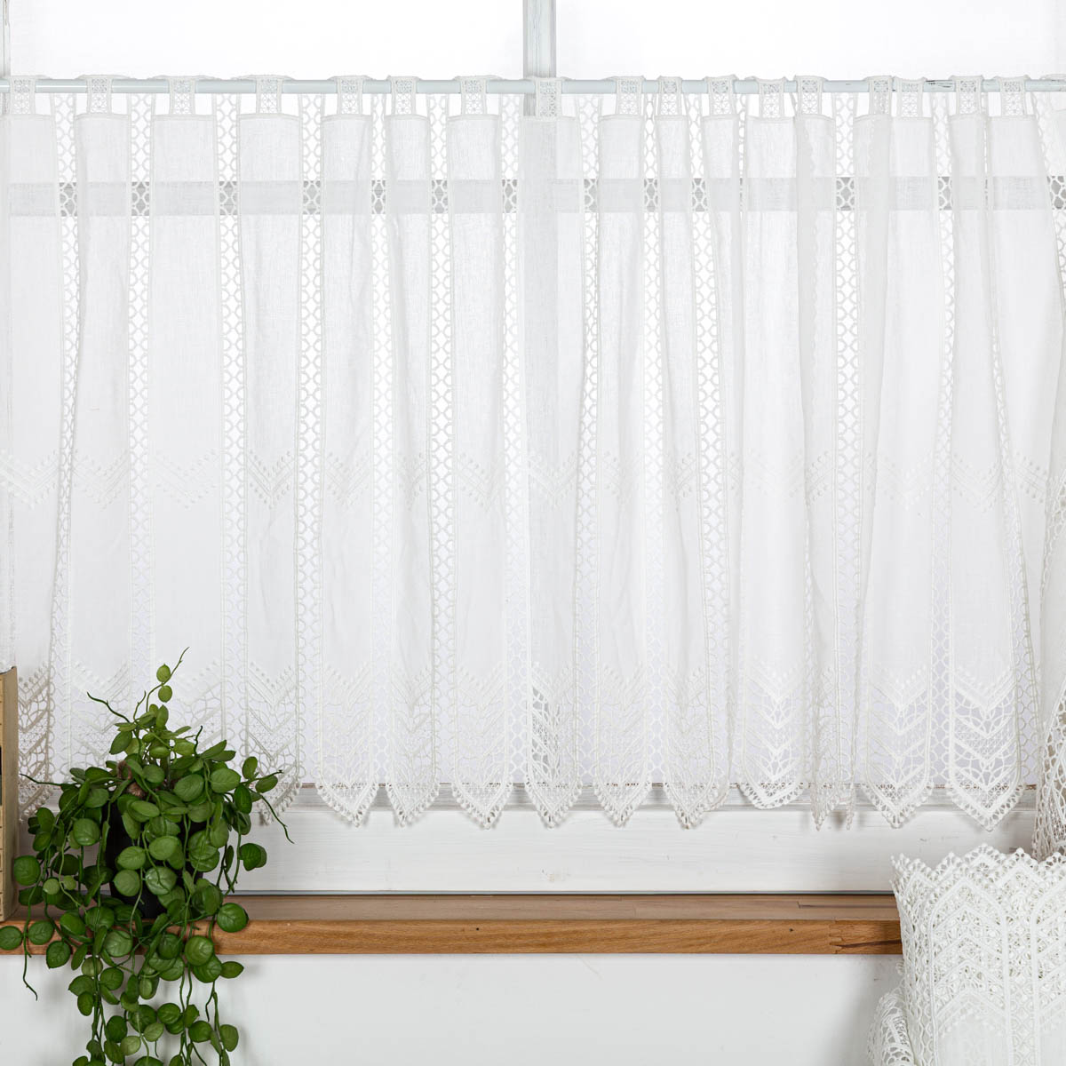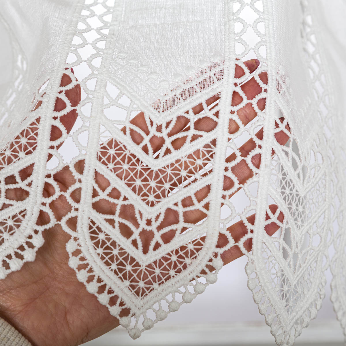 - Premium-Scheibengardine aus Makramee-Spitze – filigrane Struktur mit elegantem Glanz für stilvolle Fensterdekoration