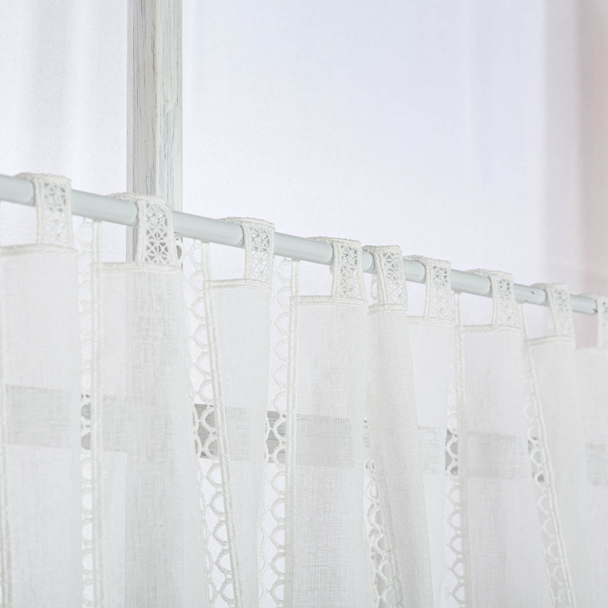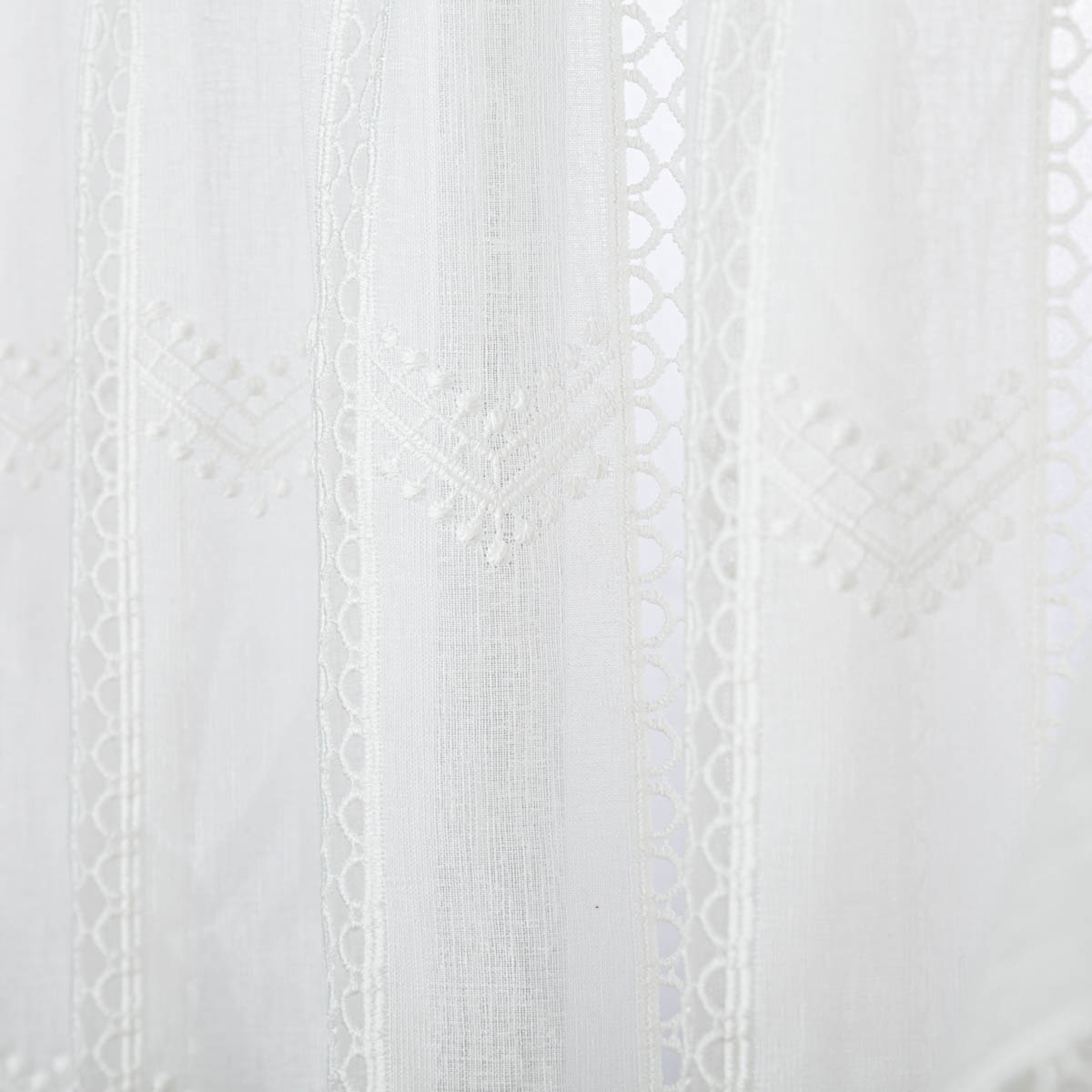 Jetzt bestellen und mit natürlicher Leinenoptik und Makramee-Stickereien eine stilvolle Fensterdekoration schaffen!