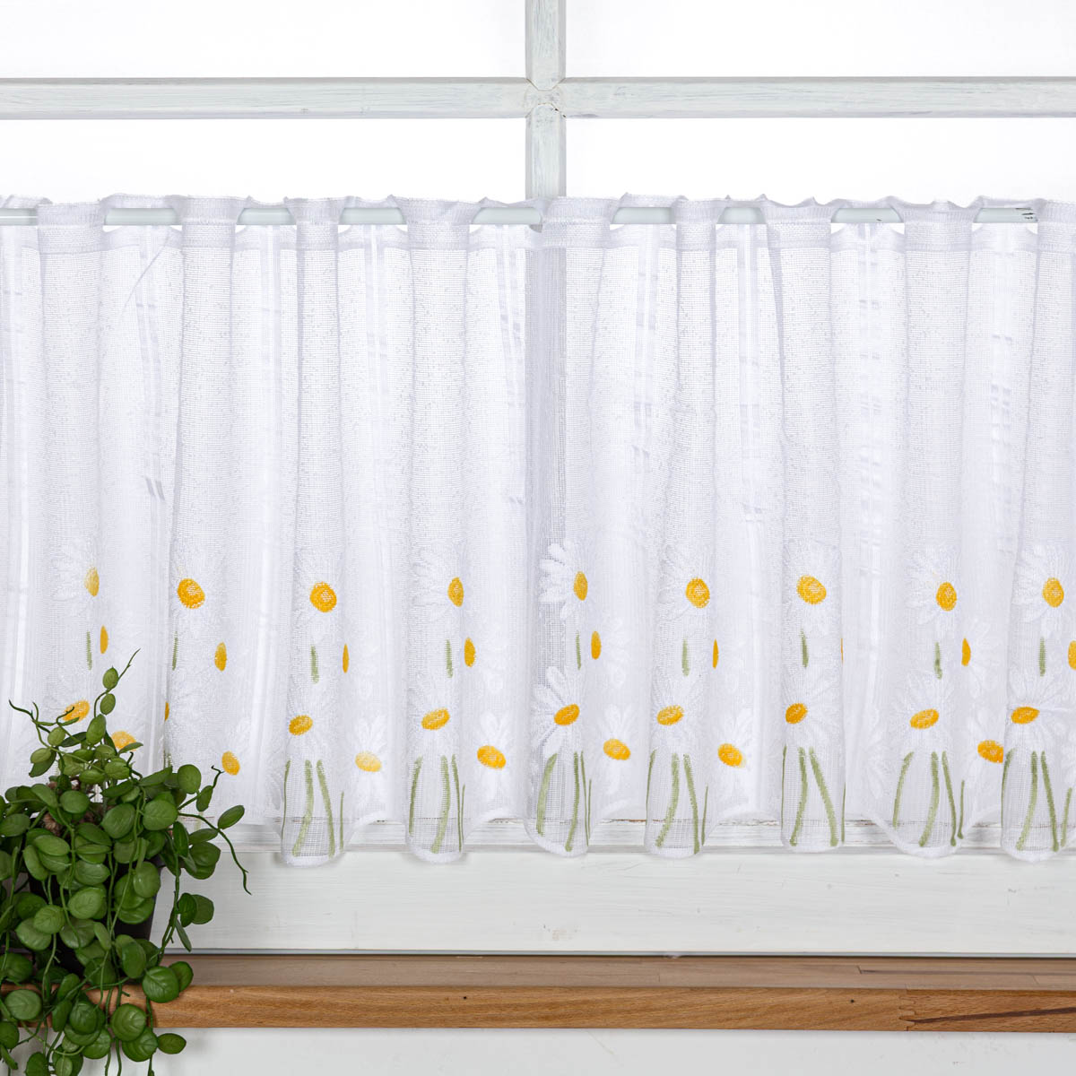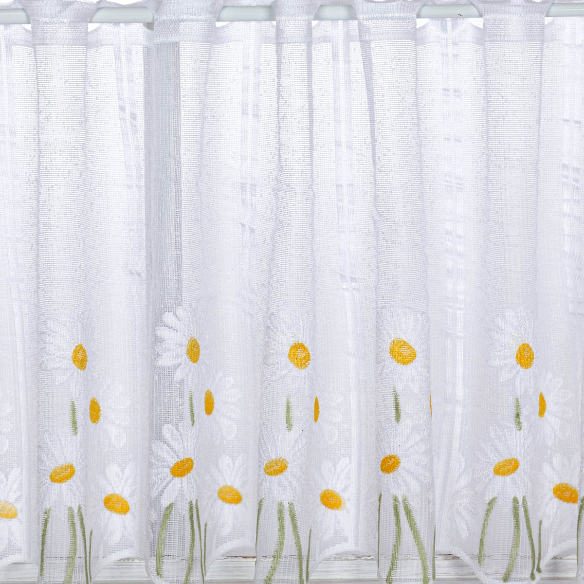 Scheibengardinen Meterware nähfrei Jacquard grob mit Margeriten-Dessin in 45cm Höhe – stilvolle Fensterdeko ohne Nähen