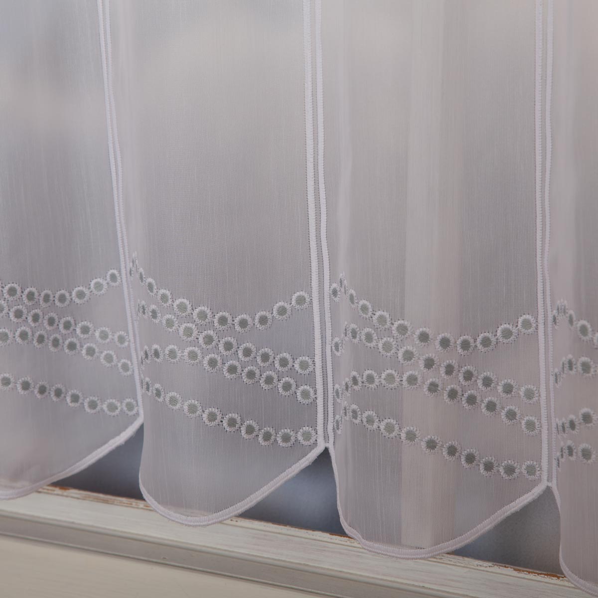 Diese zarte Scheibengardine ist die ideale Fensterdekoration für alle, die eine frische, moderne und unkomplizierte Lösung bevorzugen. Der feine weiße Voile lässt viel Tageslicht in den Raum und sorgt für ein freundliches Ambiente, während die salbeigrüne Pünktchenstickerei einen charmanten, dezenten Farbakzent setzt.