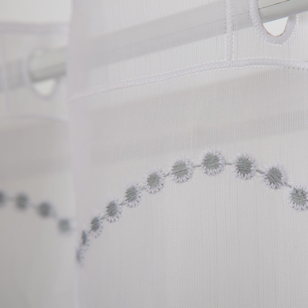 Weiße Scheibengardine aus transparentem Voile mit feiner Pünktchenstickerei in Salbeigrün