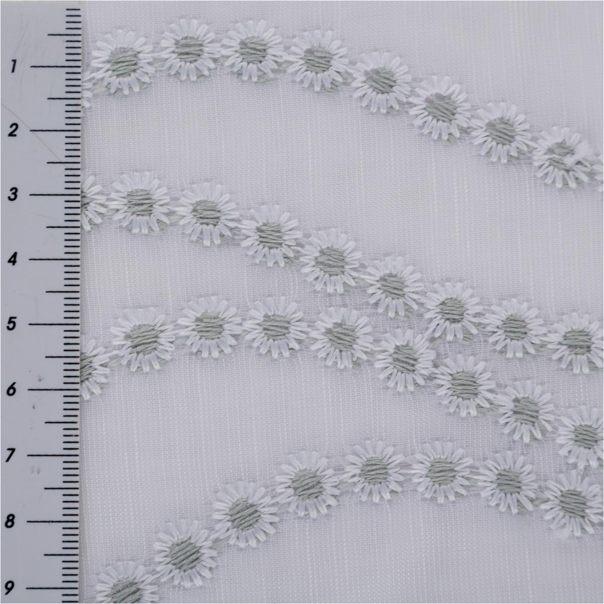 Voile in Weiß mit salbeigrüner Pünktchen-Stickerei