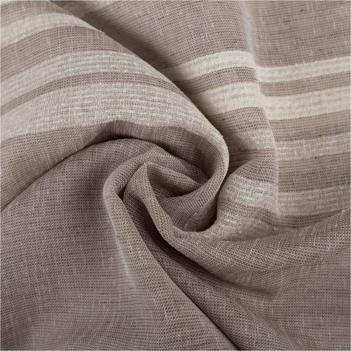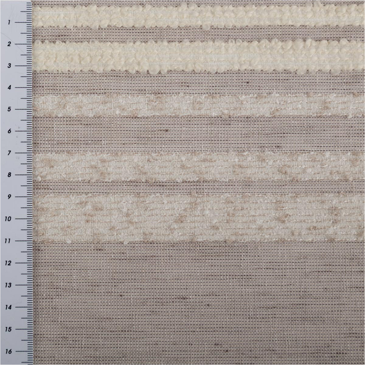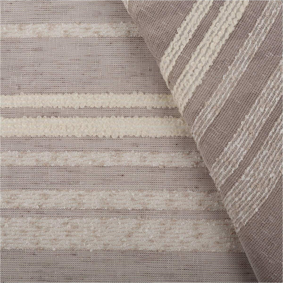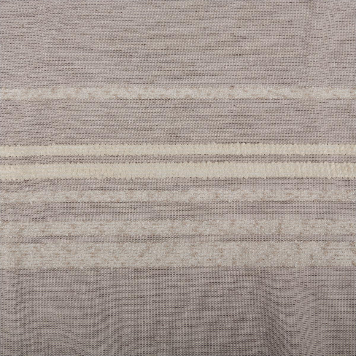 Transparenter Voile mit natürlicher Struktur in meliertem Taupe mit eingewebten Bouclé-Streifen in Wollweiß